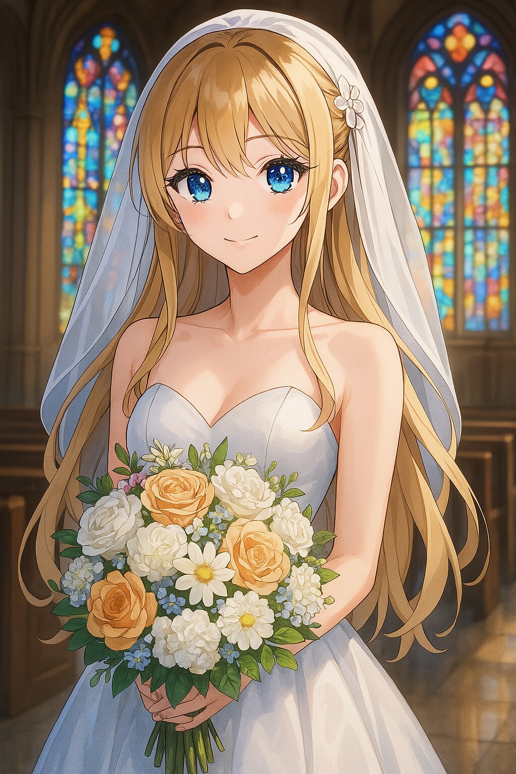 二次創作キャラ系のプロンプトを少し書き直して、画像を生成してもらいました。