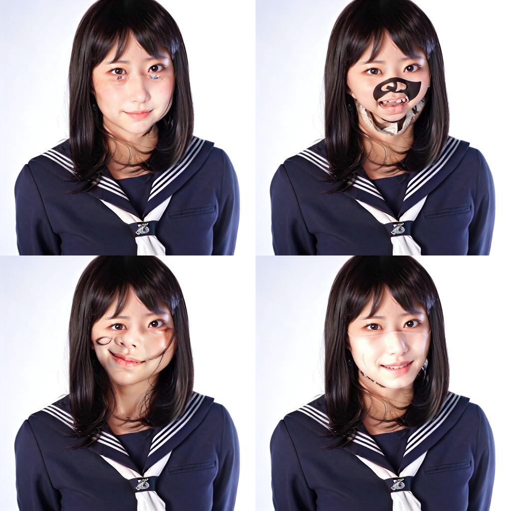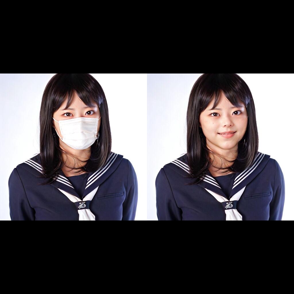 2枚目:マスクをした女の子の写真(パブリックドメイン)を薄くi2iしたもの。