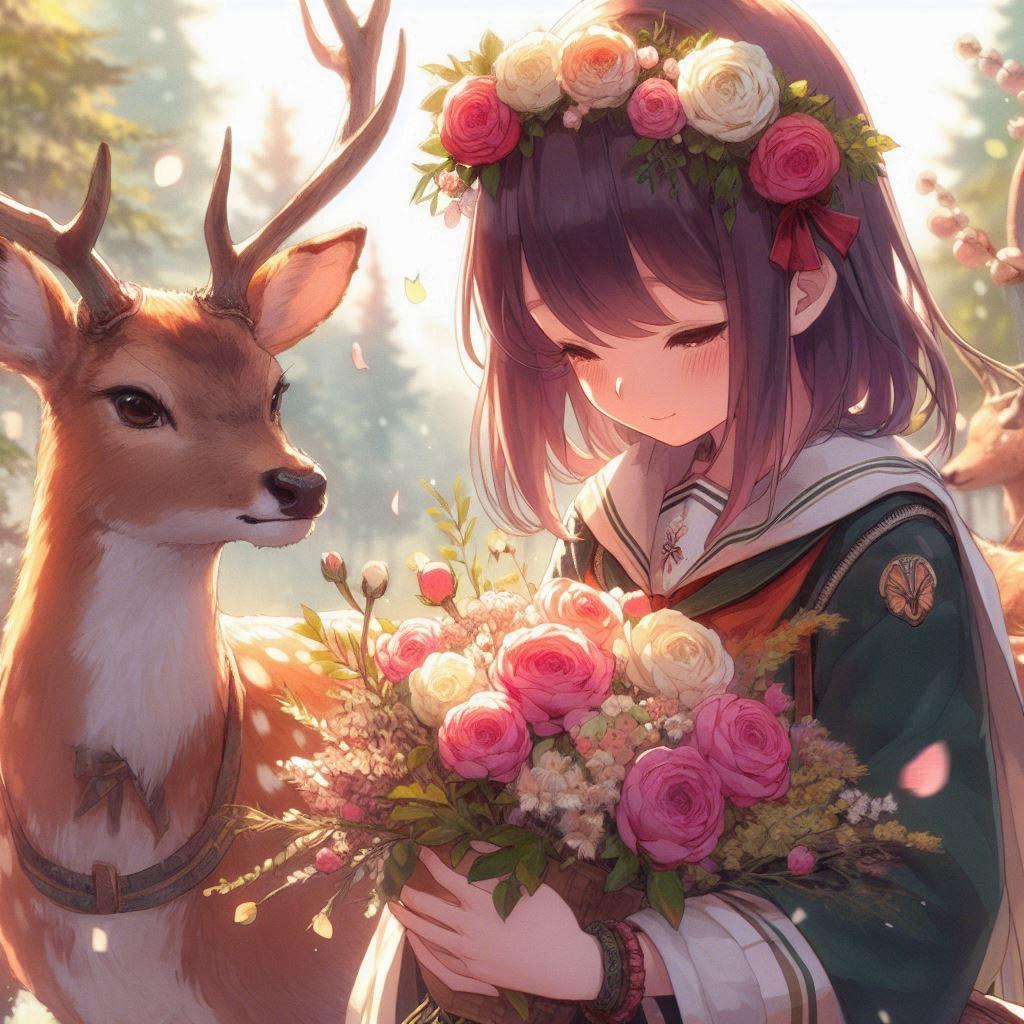 👩「ダメだよぅ、これはちちぷいちゃんにあげる花束だからっ!そこ、よだれ垂らさない!」