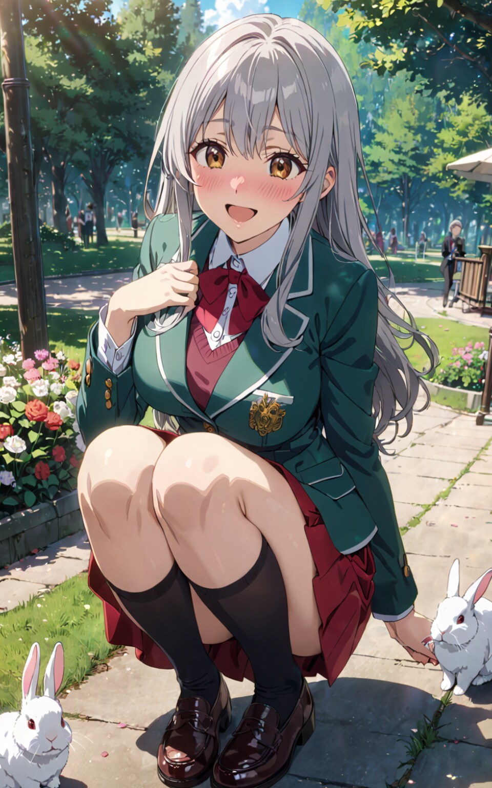 ◆6枚目→高校生。学校帰りに兎と戯れる。おっ●いが急成長する。