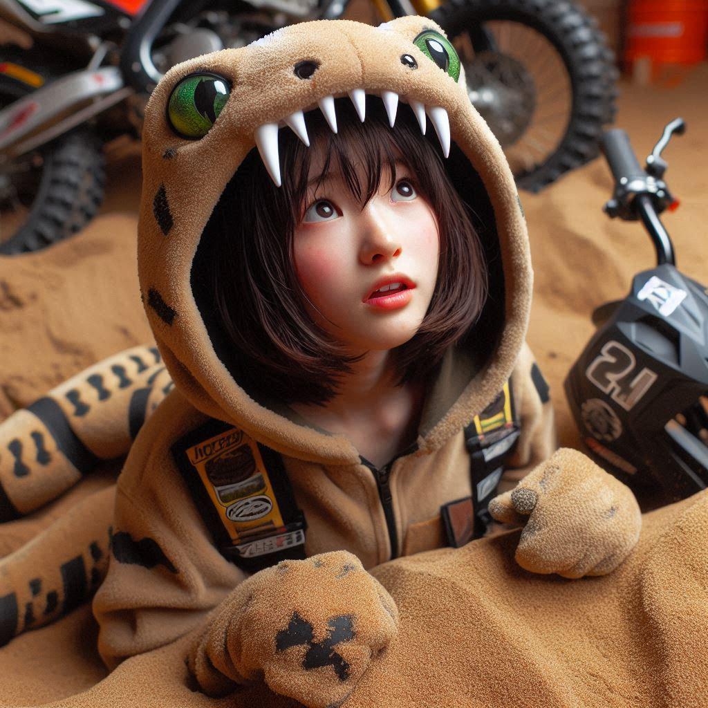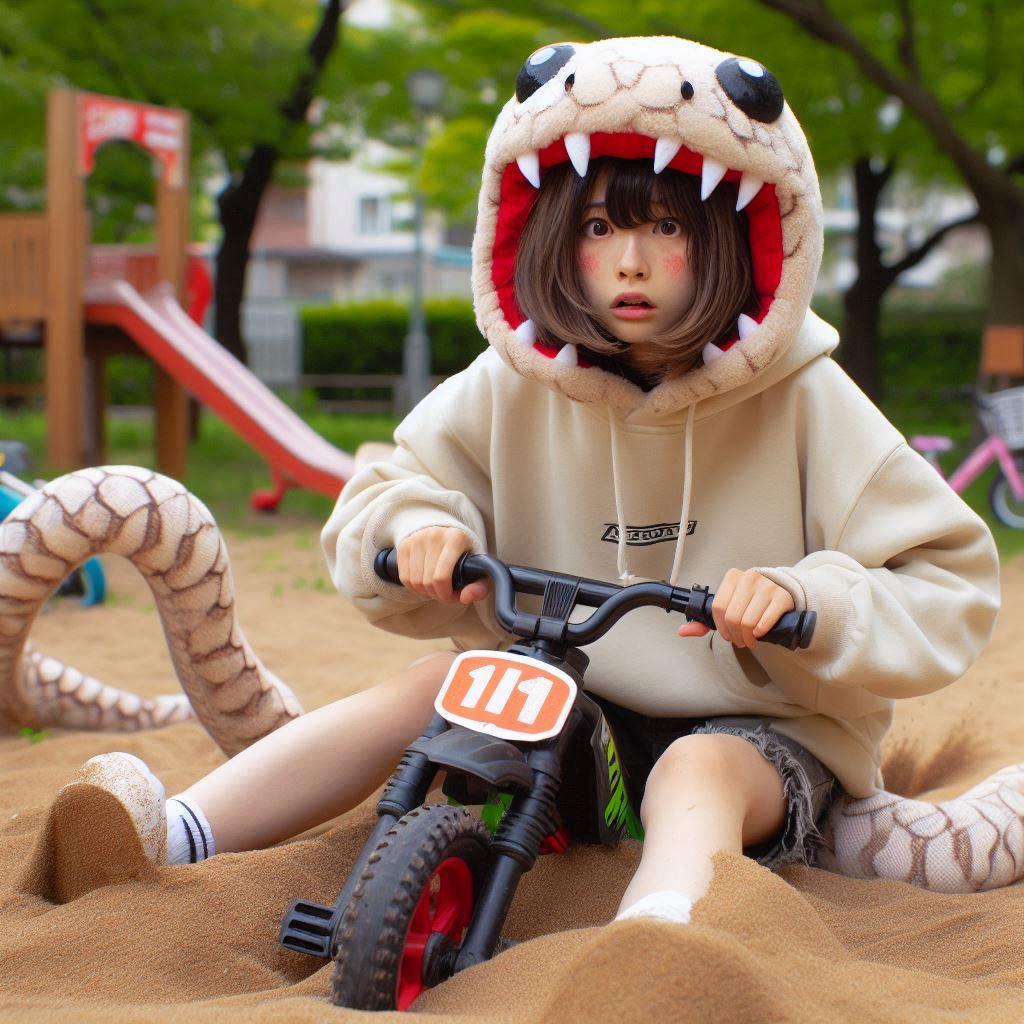 と言ってもいきなりは乗れないので子供用バイクで公園の砂場で練習です。