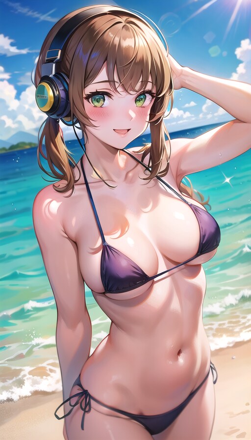 デニムジャケットが青、水着は黒…みたいな複数の色指定はどうしても安定しない。水着は黒なんだけど胸の部分だけ赤くして…みたいな要求が通る気がしない…