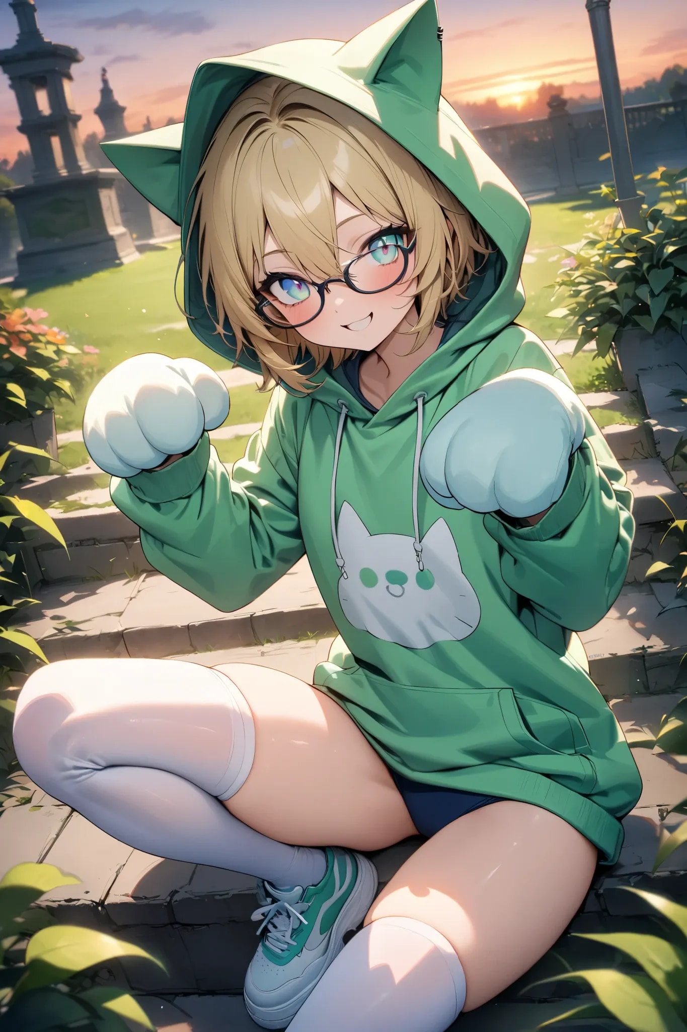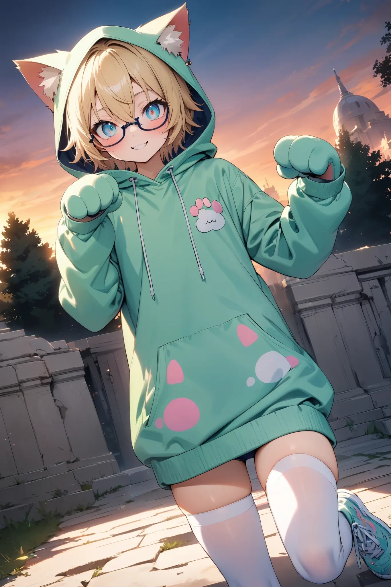 のっさんのプロンプトで猫耳パーカー覚えました🎶