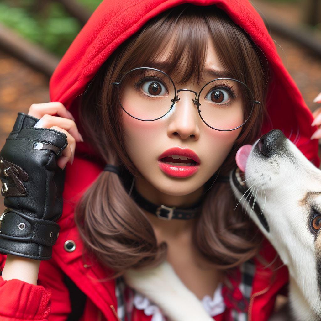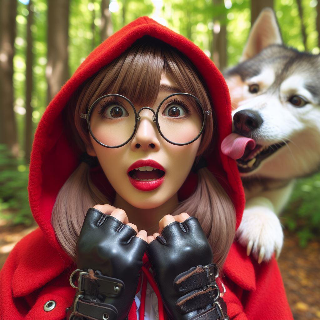 狼の血を引くと言われるハスキーが苦手な赤ずきんちゃんから悲鳴がこぼれる。