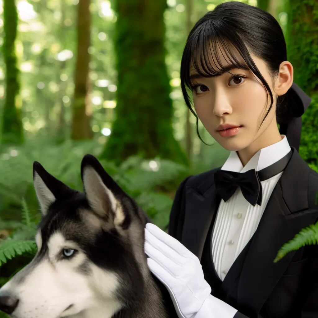 そこへ息を切らせて執事ちゃんが登場。ハスキーを捕まえると、視線の先にはハスキーに遊び倒されてグッタリした赤ずきんちゃんが…