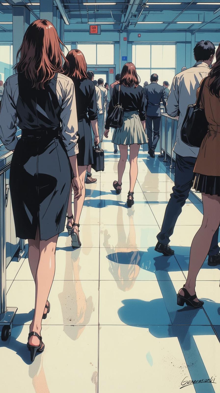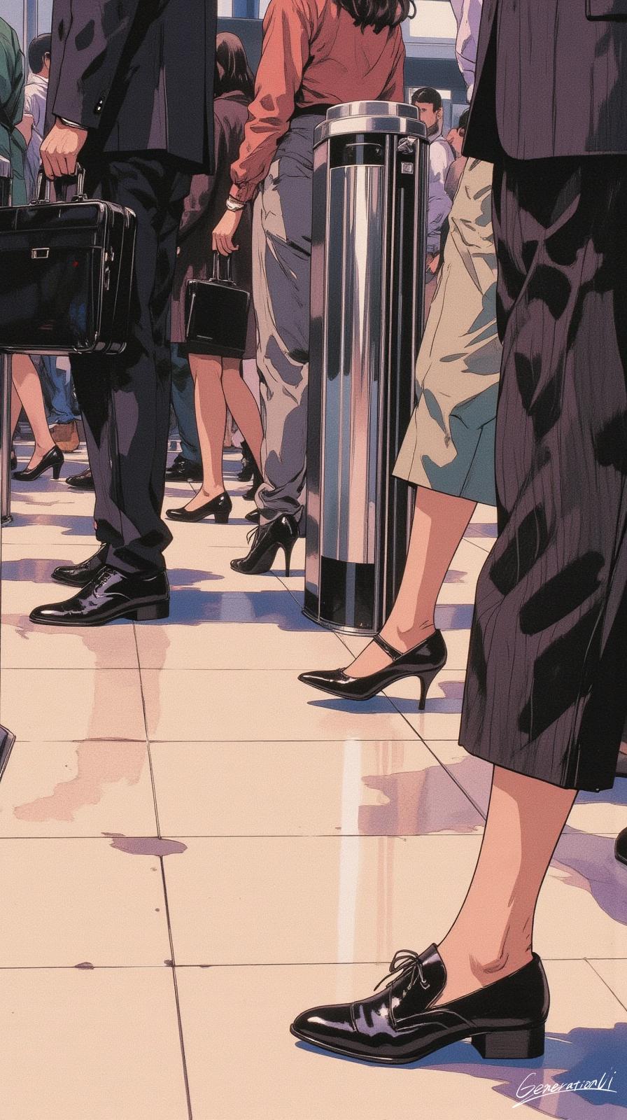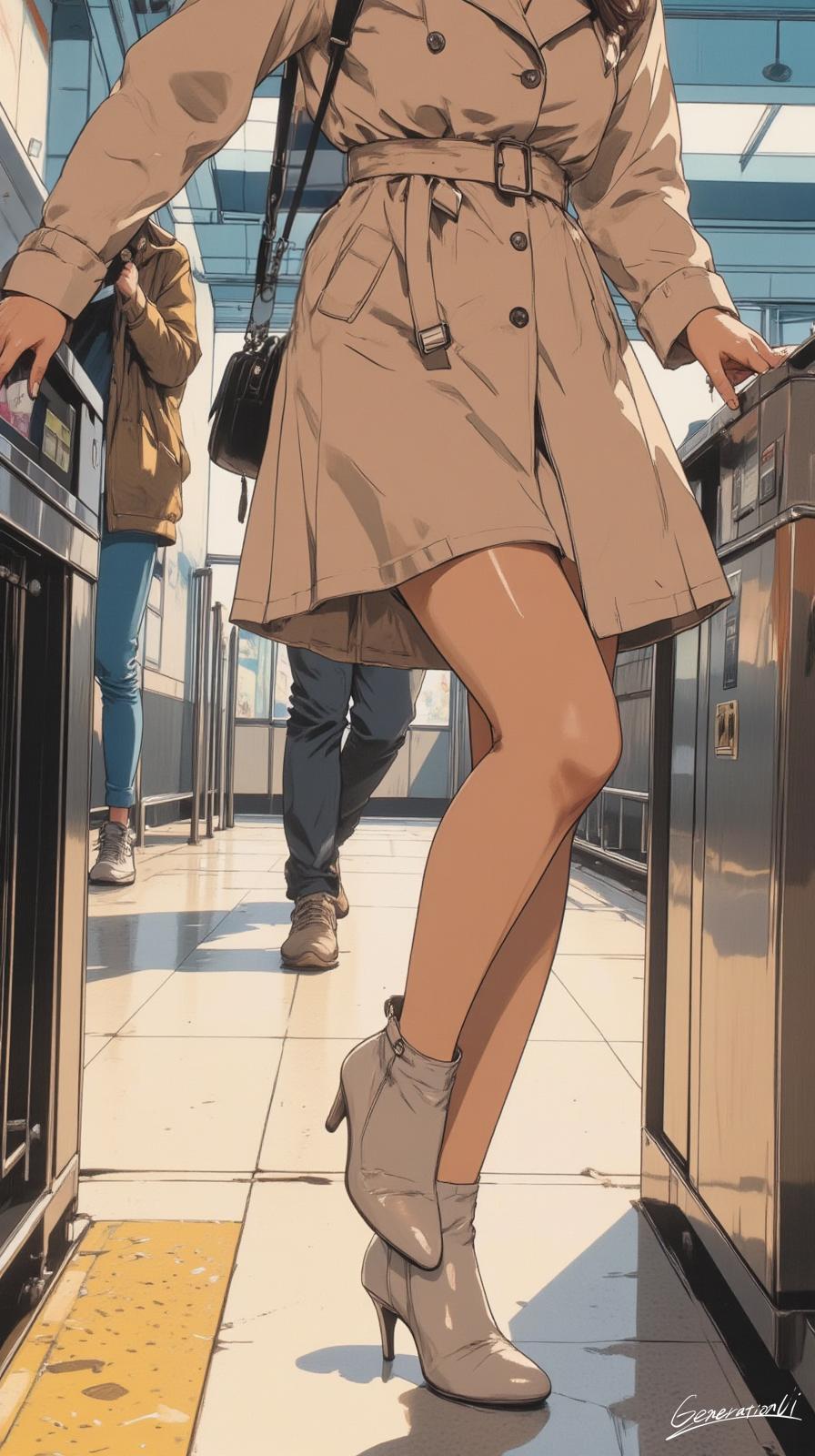ヒールの女性は、帰らぬ誰かを迎えに来た、少し疲れたまなざし。
