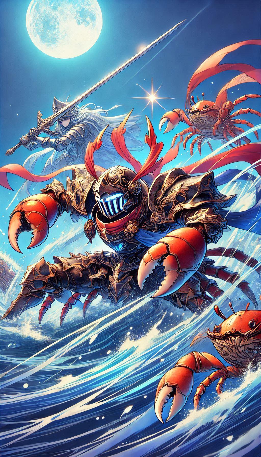 登場時:お互いの墓地の枚数の合計が5枚以上の場合、「青⚔️10、🦀🛡20」のエンチャントを得る。