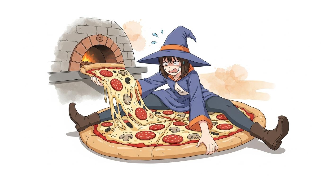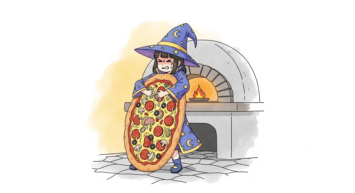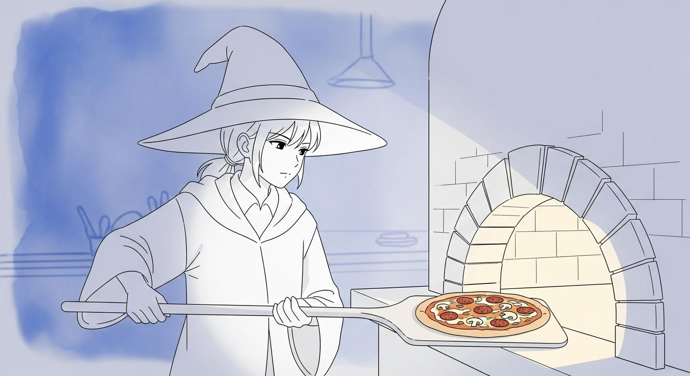 今日も魔女見習いがピザ生地を練り、石窯へとピザを投入する。