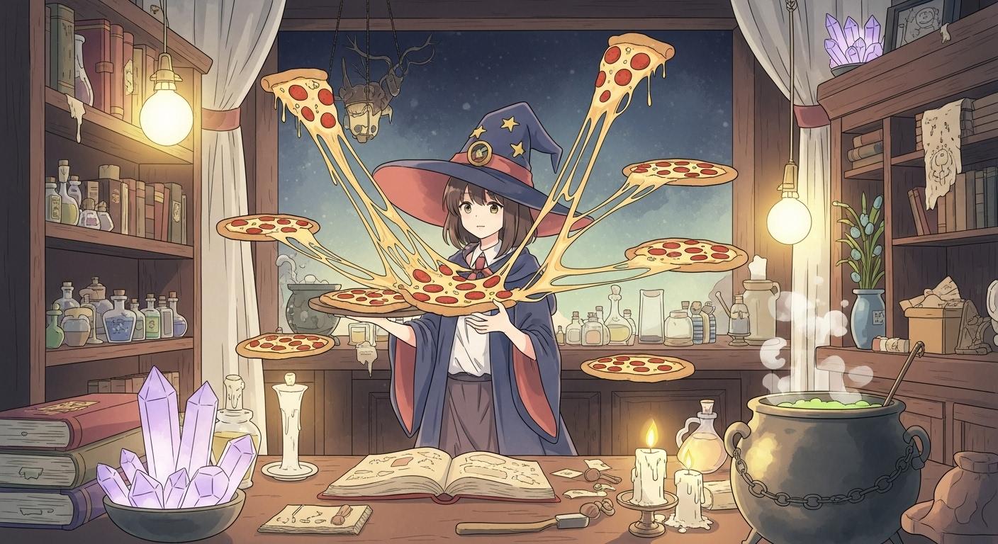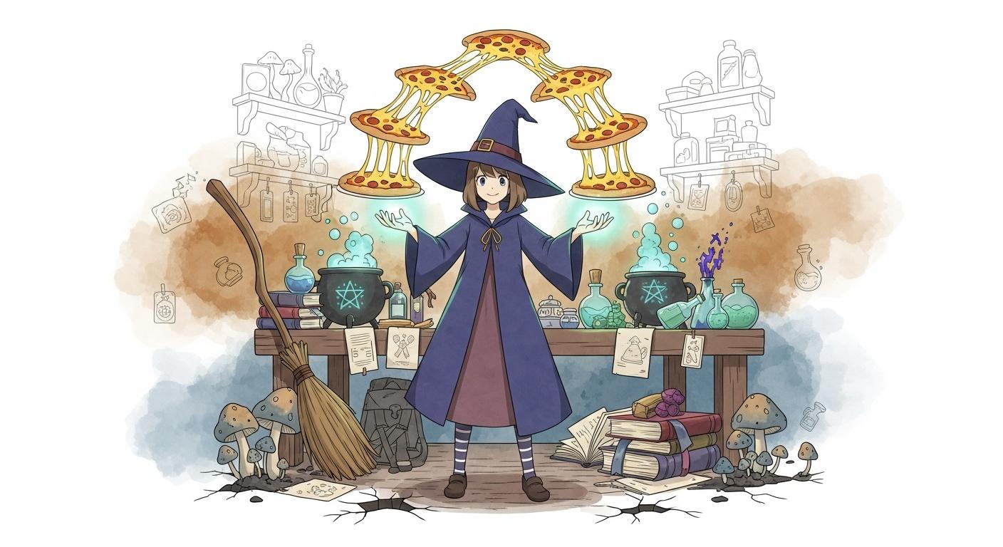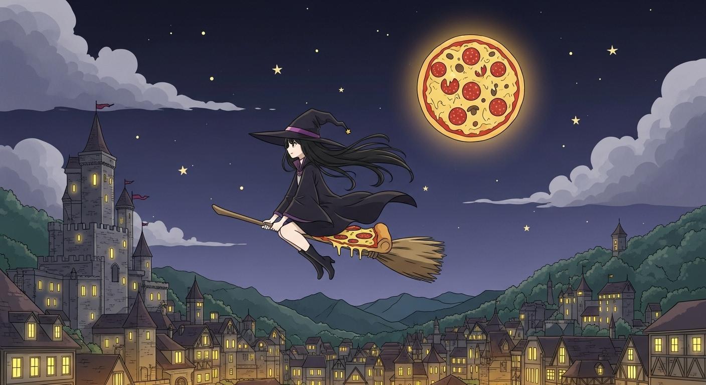 今日も魔女見習いがピザ生地を練り、石窯へとピザを投入する。