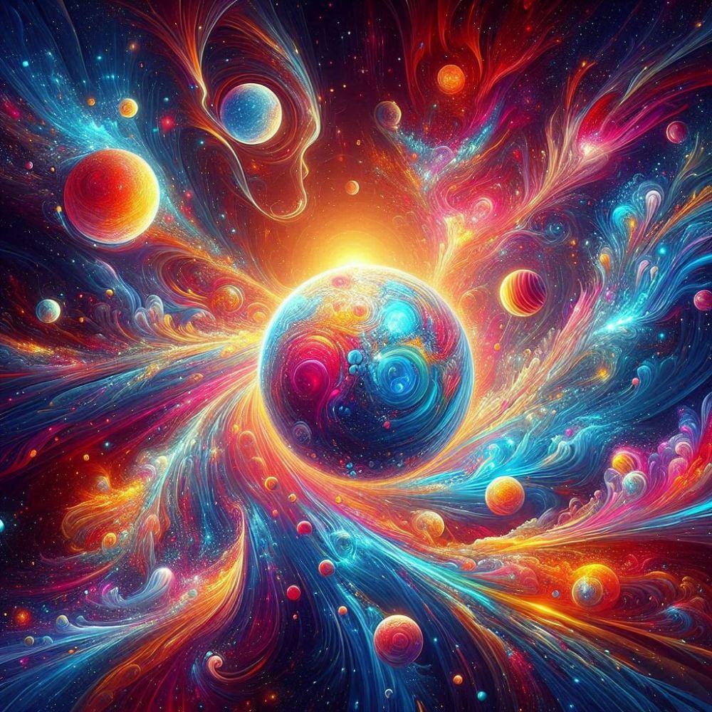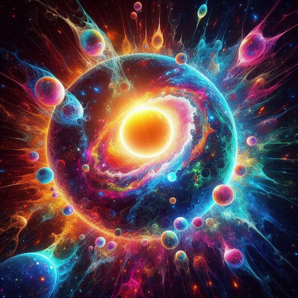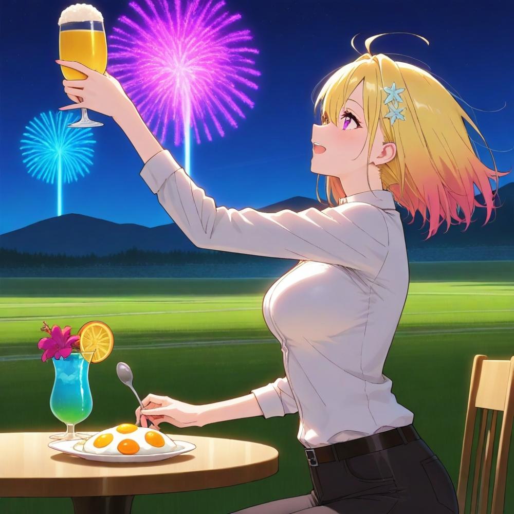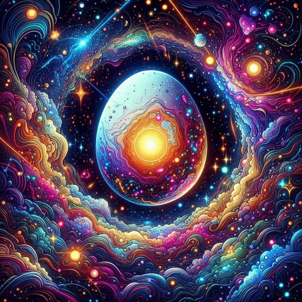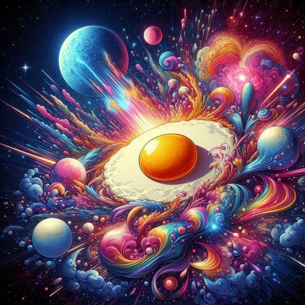 アニメ風、夜空&宇宙虹色発光目玉焼き