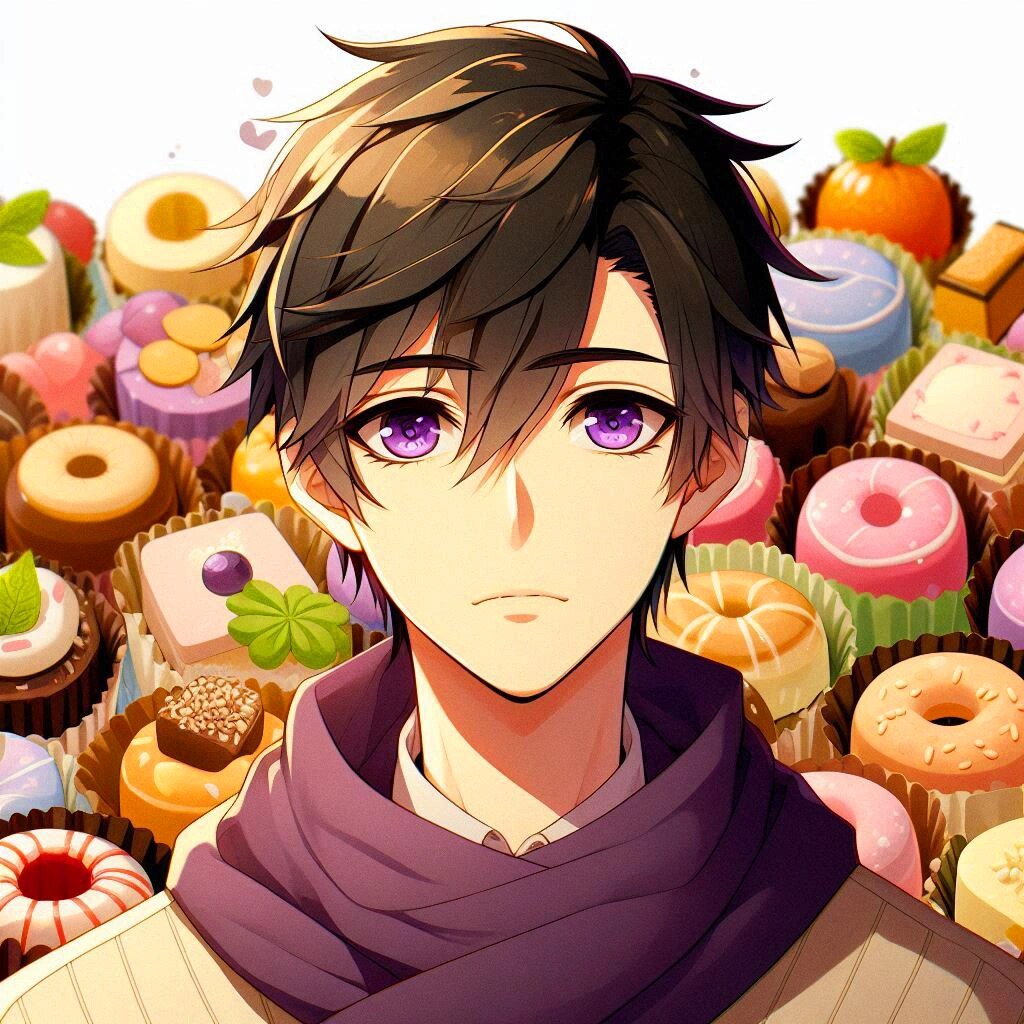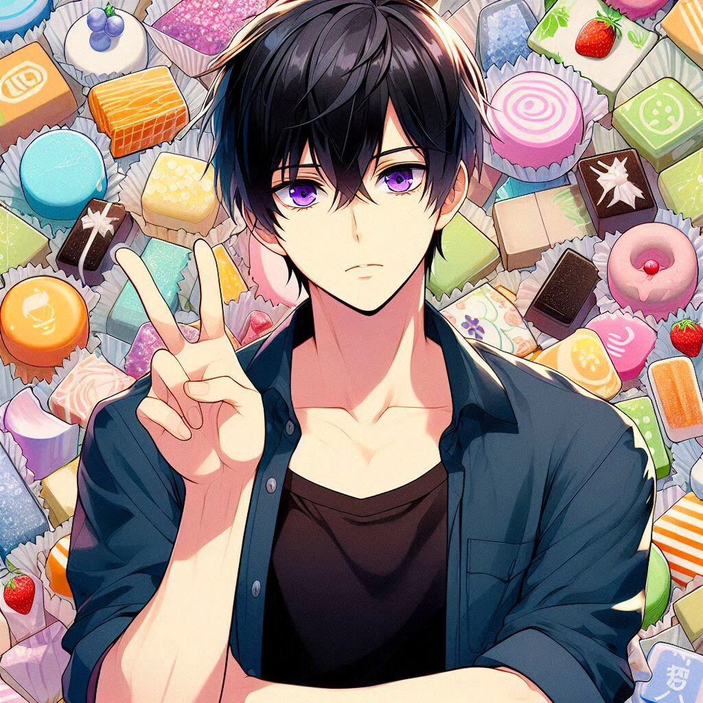 では、和菓子と黒髪短髪男性をご覧下さい*