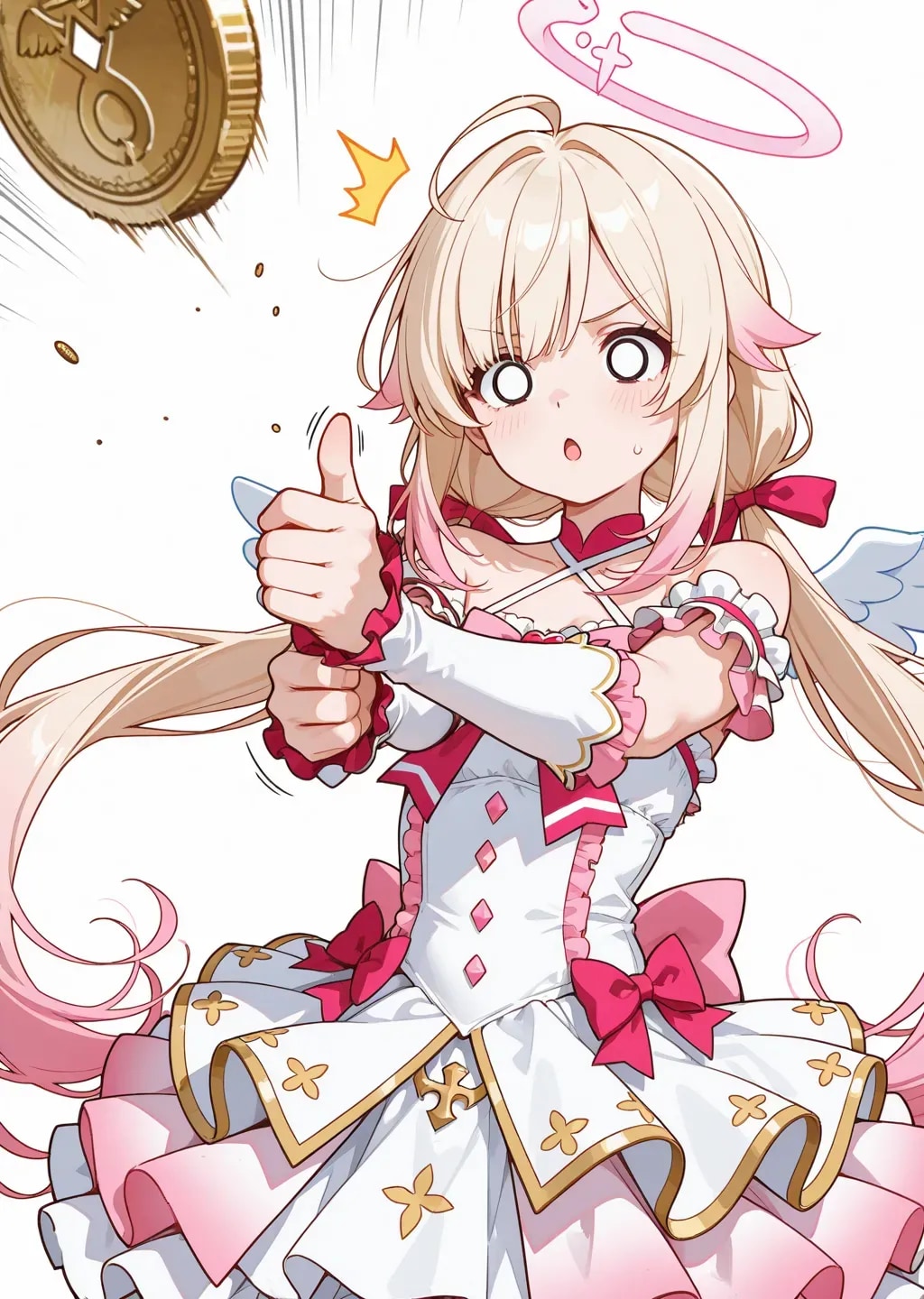 コインを打ち上げるのは色んな人がやってるから、キャッチしてる風な動作だね。