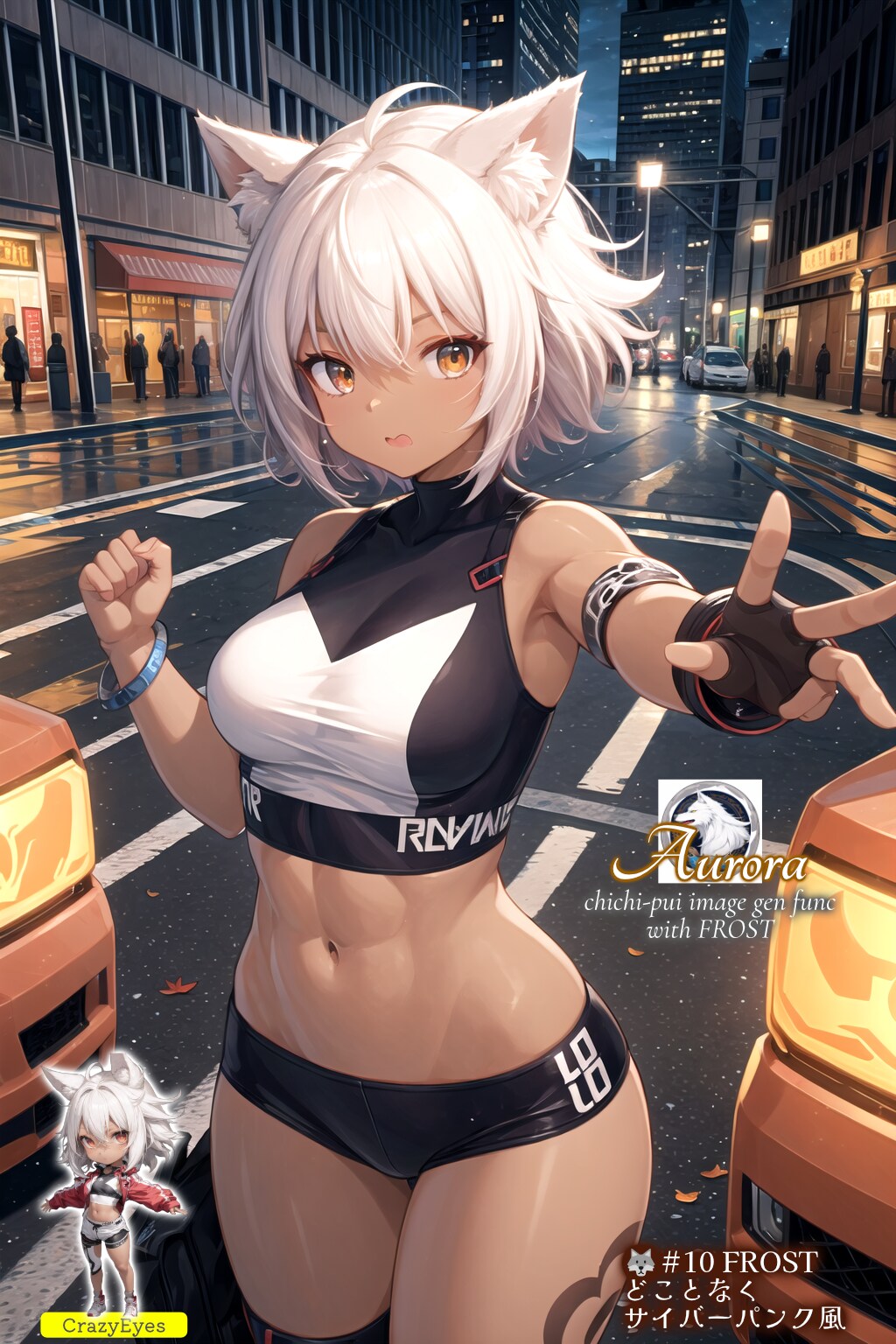 ●#7枚目:V4B:10puiモデルは服装の tribal fashion を認識してくれないですね😭ポリスものとかサイバーパンクものに出てきそうな露出度の高いクール系おねいさんになってしまいました🙀