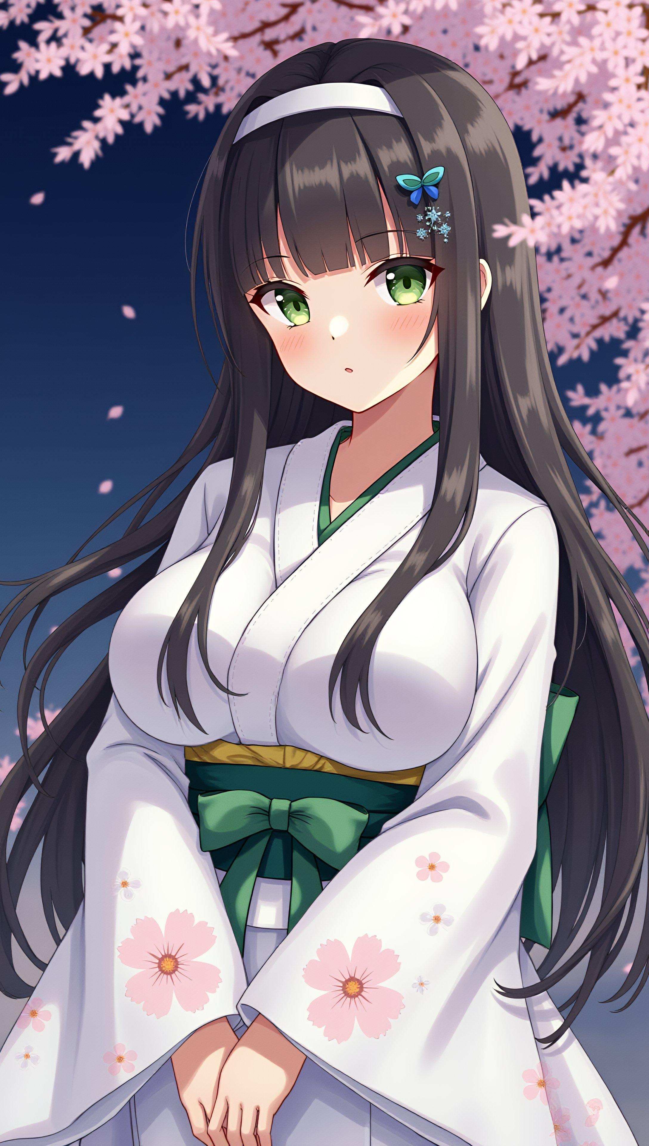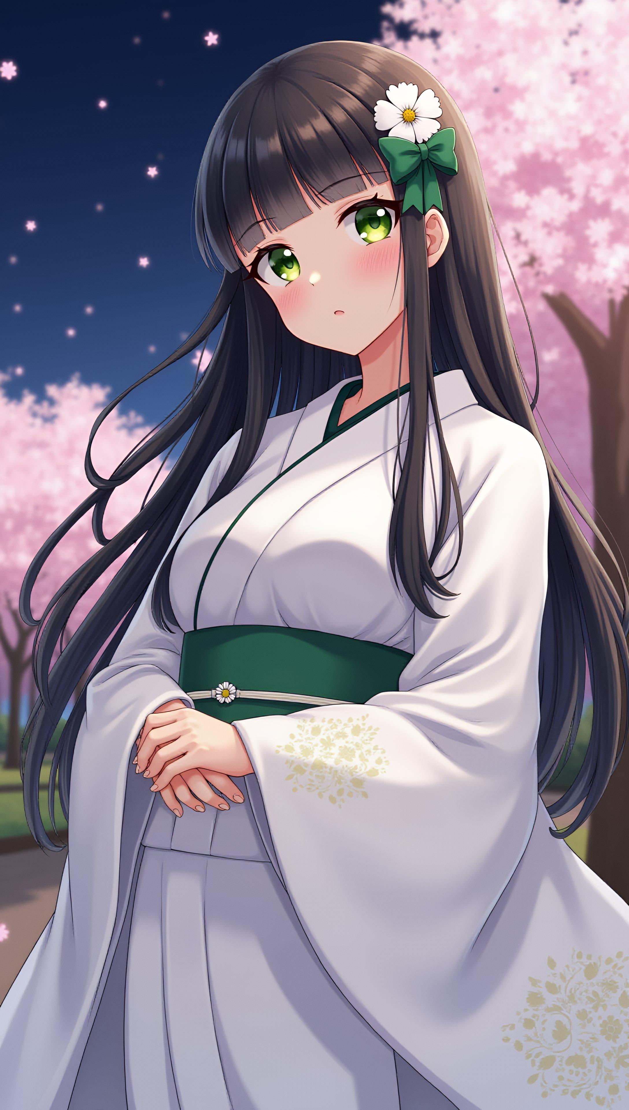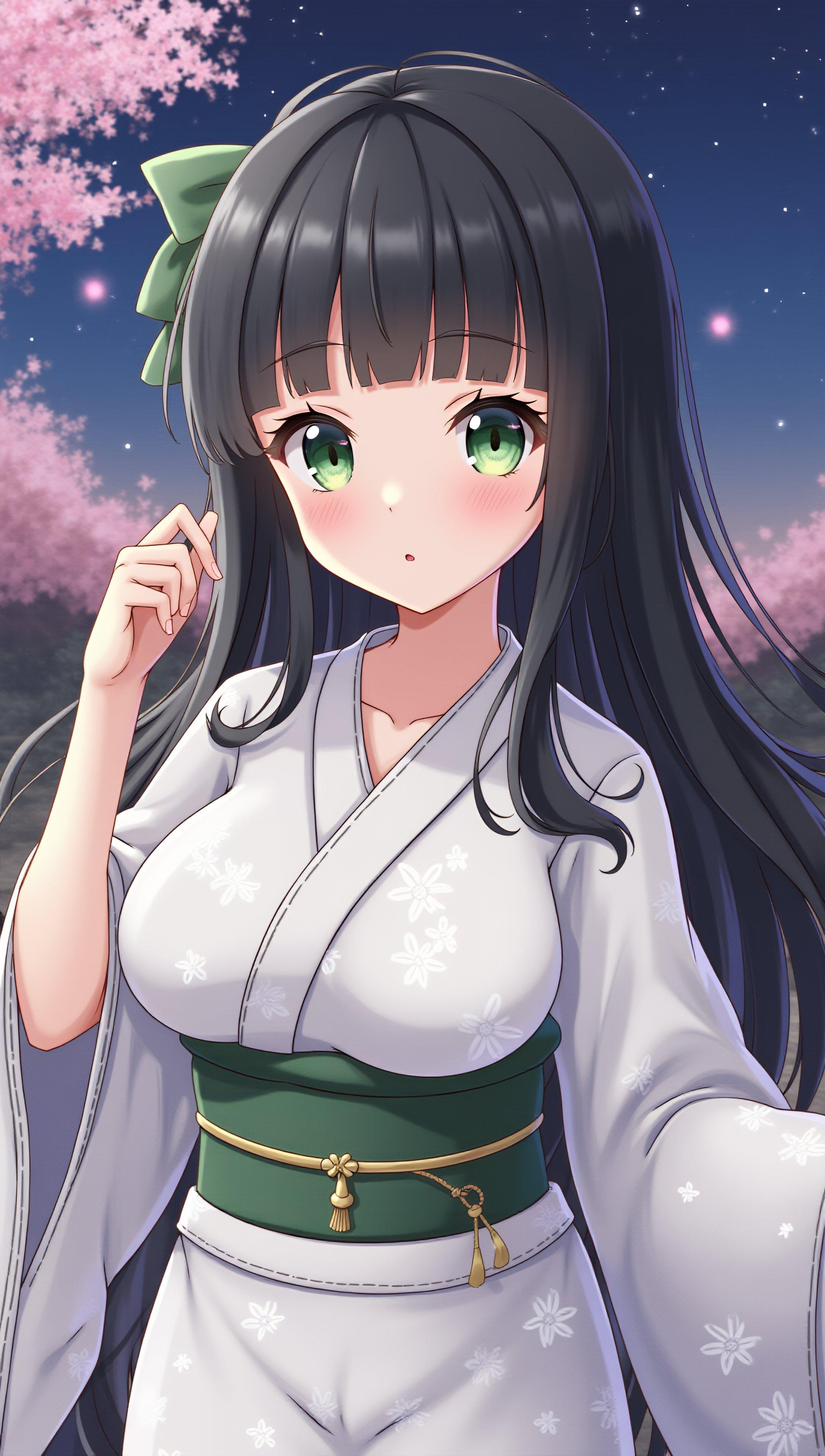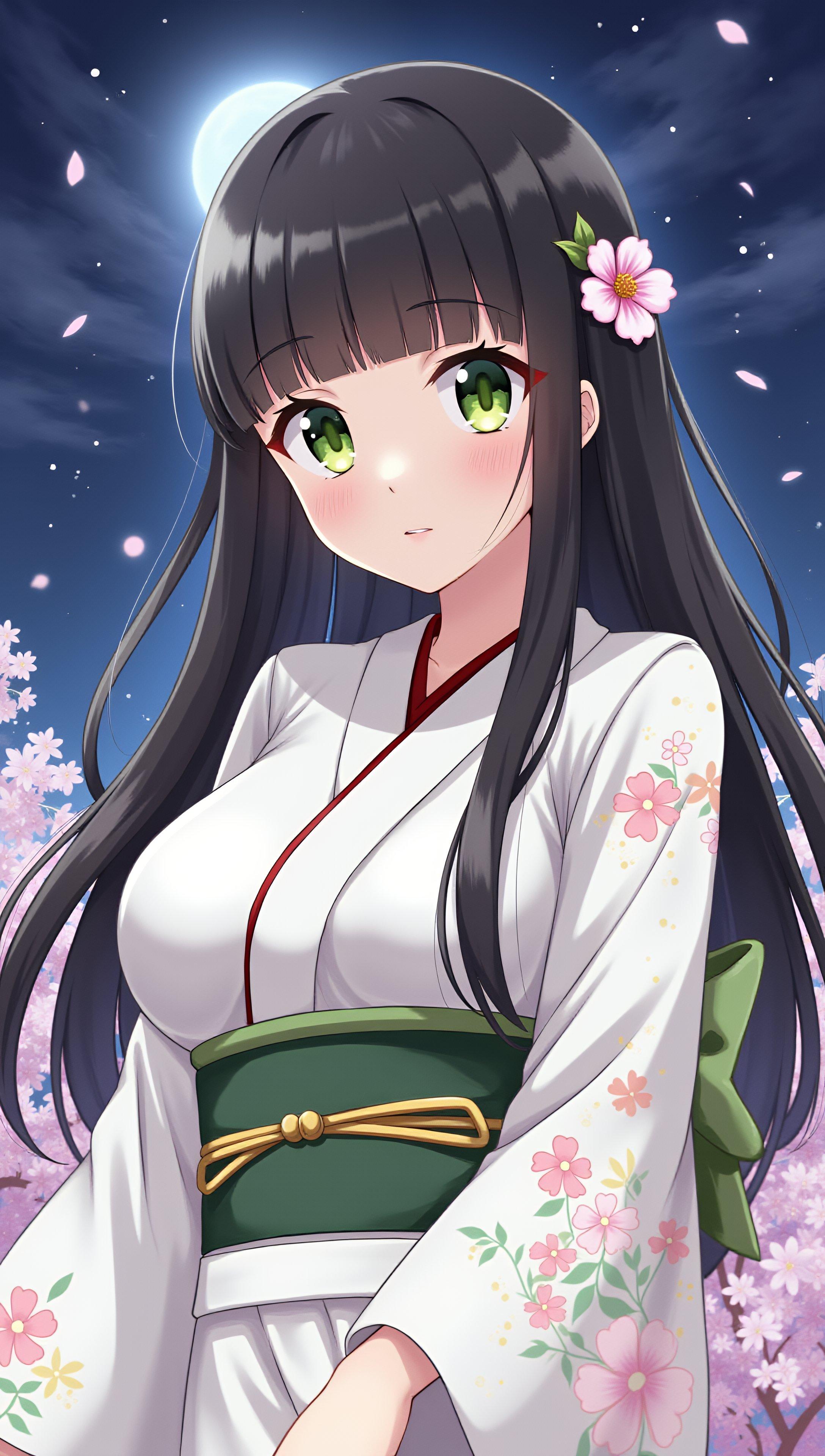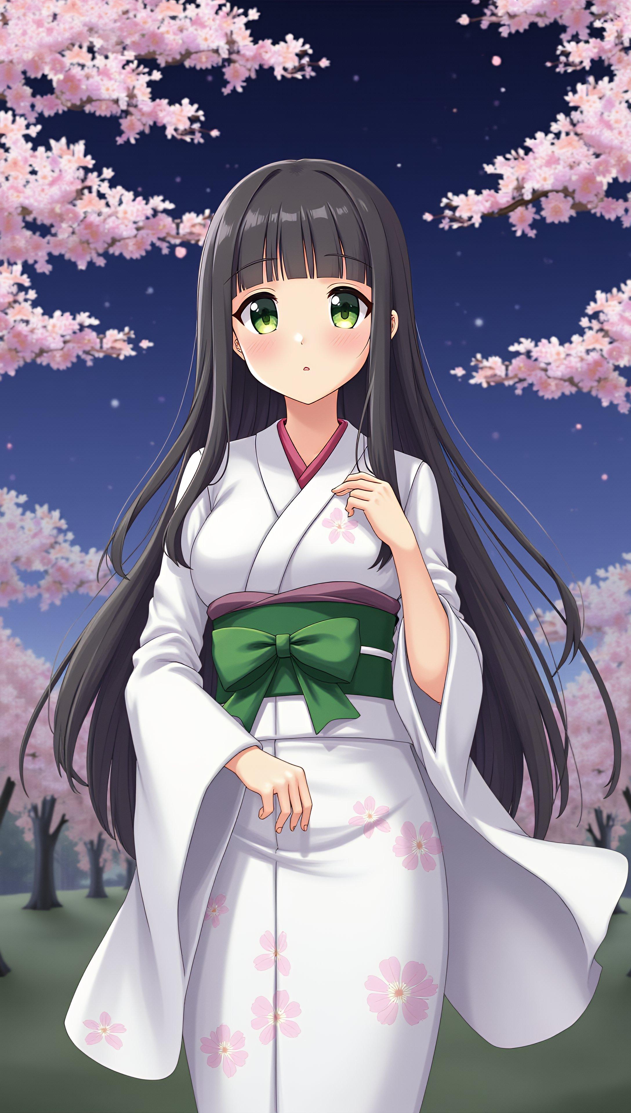 夜桜と和服の少女(5枚)