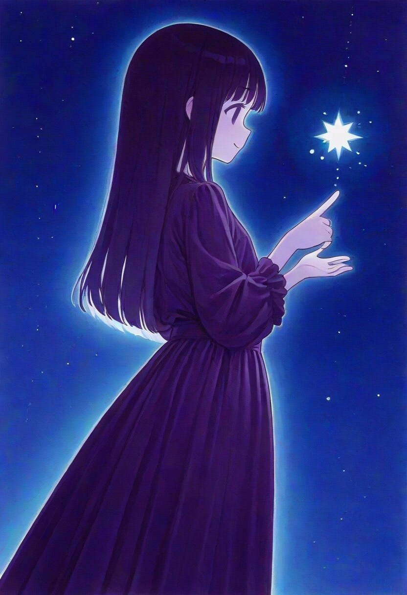 ロングドレスと夜空の星と