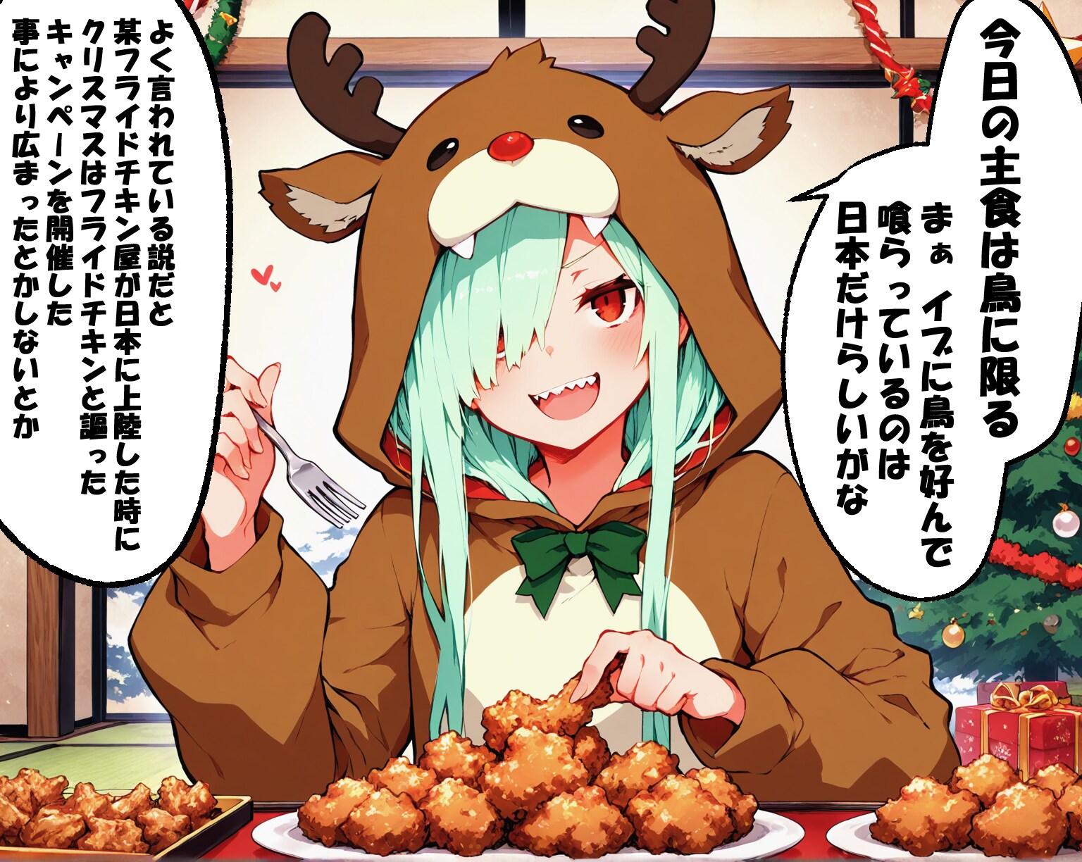主食はチキン、そして〆のホールケーキ -Chicken as a staple, and a whole cake to finish it off-
