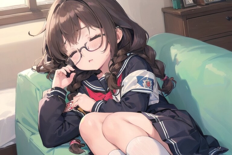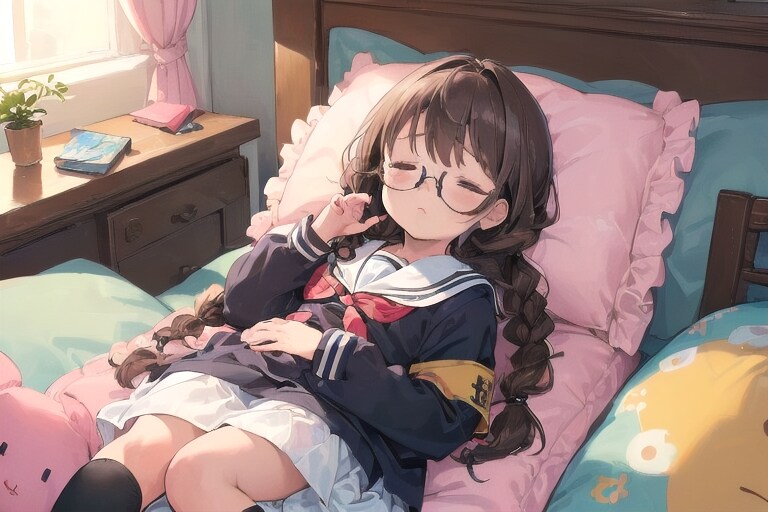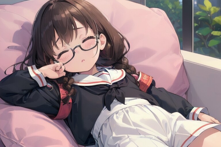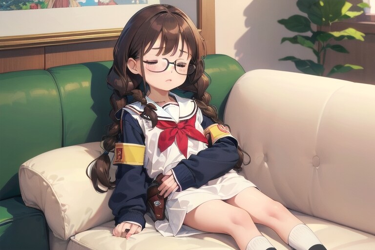 お疲れ委員長ちゃんです。寝てるところを作りたかったというのもありますが結構難産でした。全身、脚を入れようとしたのがあまり良くなかったかも知れません。シンプルに作った方が良かったですね。あと、クオリティーの部分に手を入れてみました。