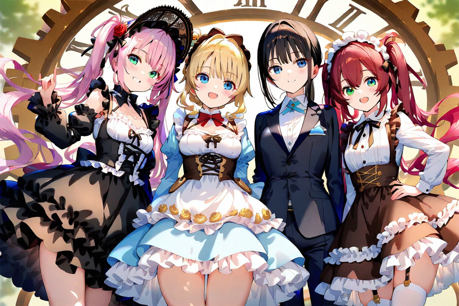 4 girls, group shot, teen, cute, various costumes,