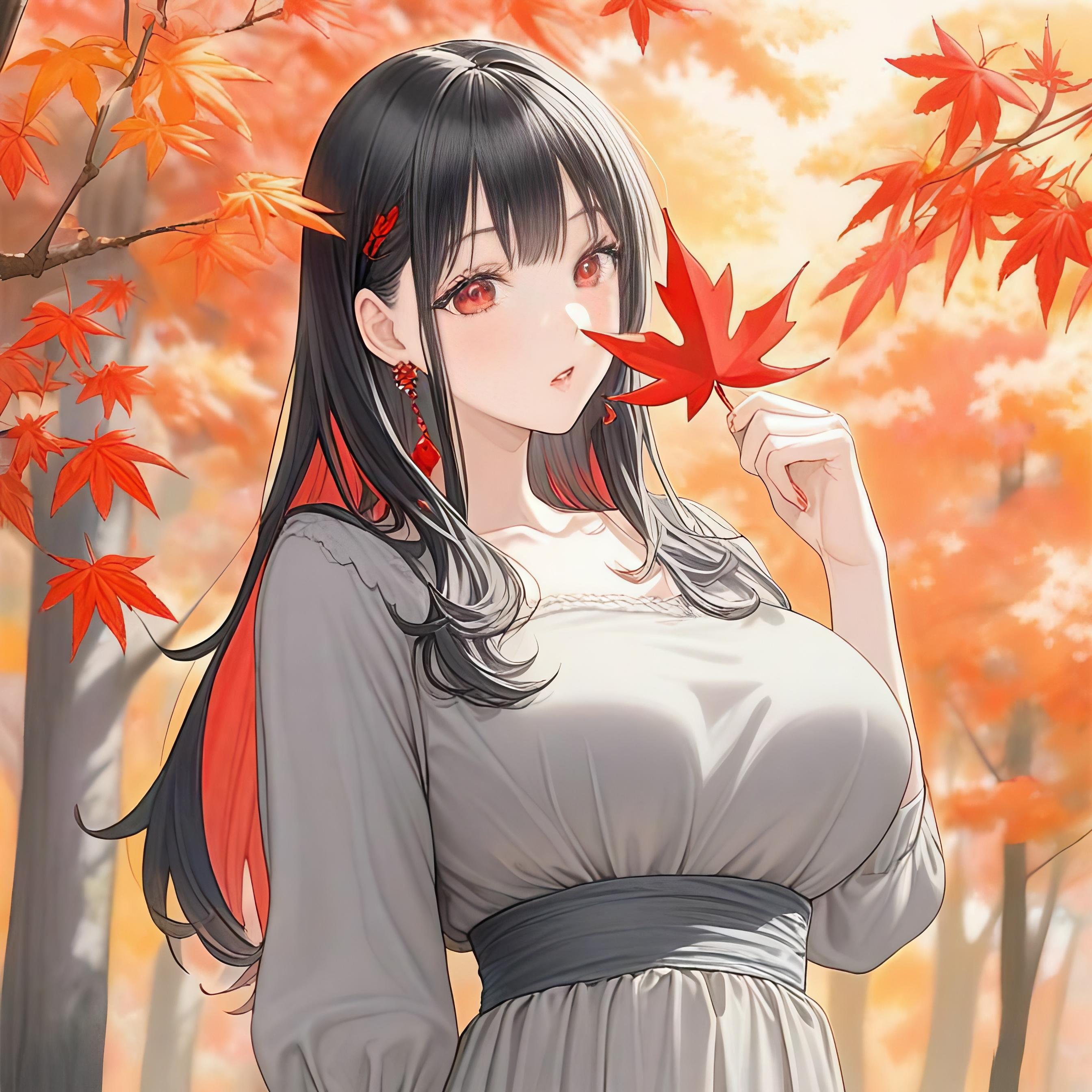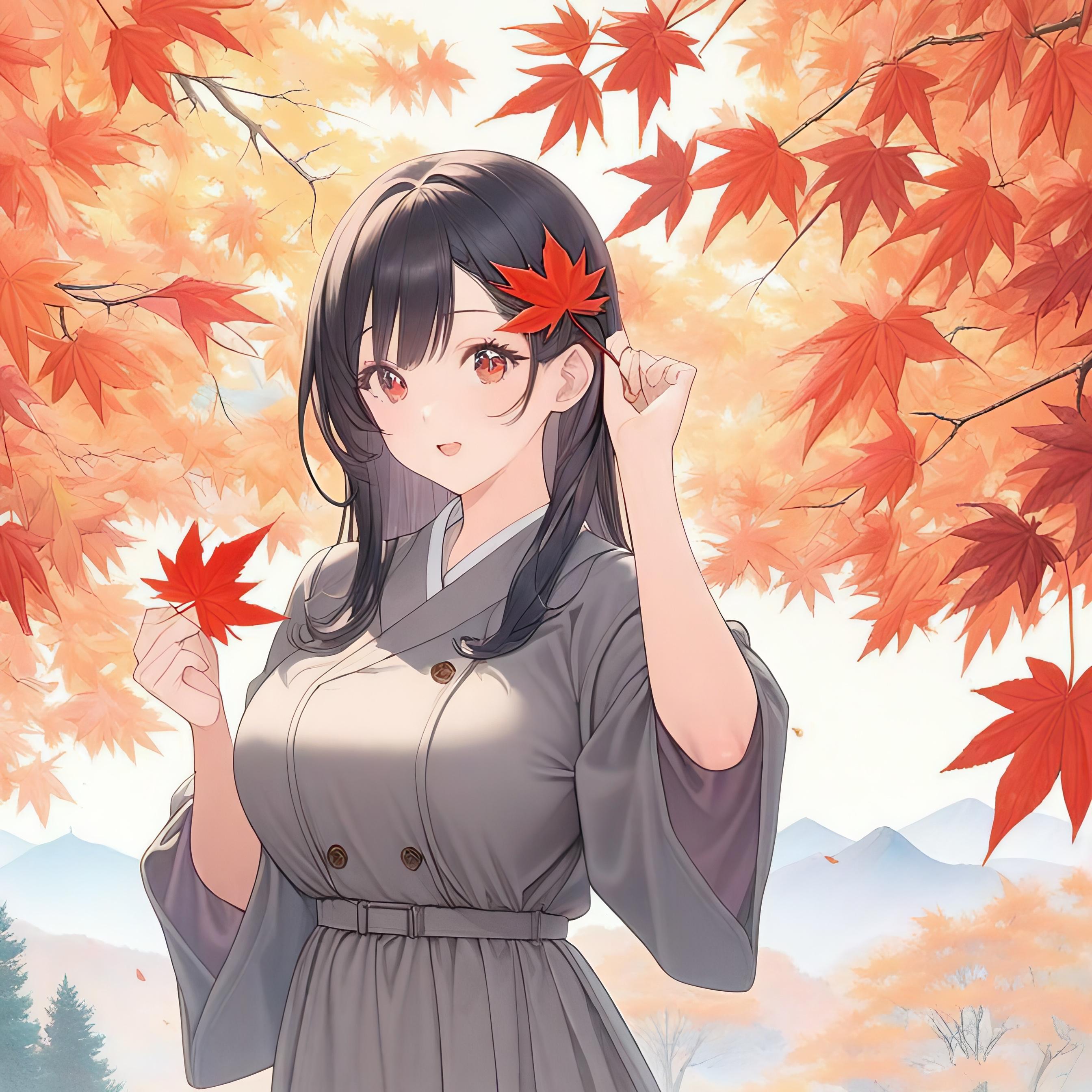 近所の里山は紅葉はないのだけどきれいに楓が紅くなってた。紅葉より大きい葉。プロンプトで楓と書いても紅葉っぽくなっちゃうな。