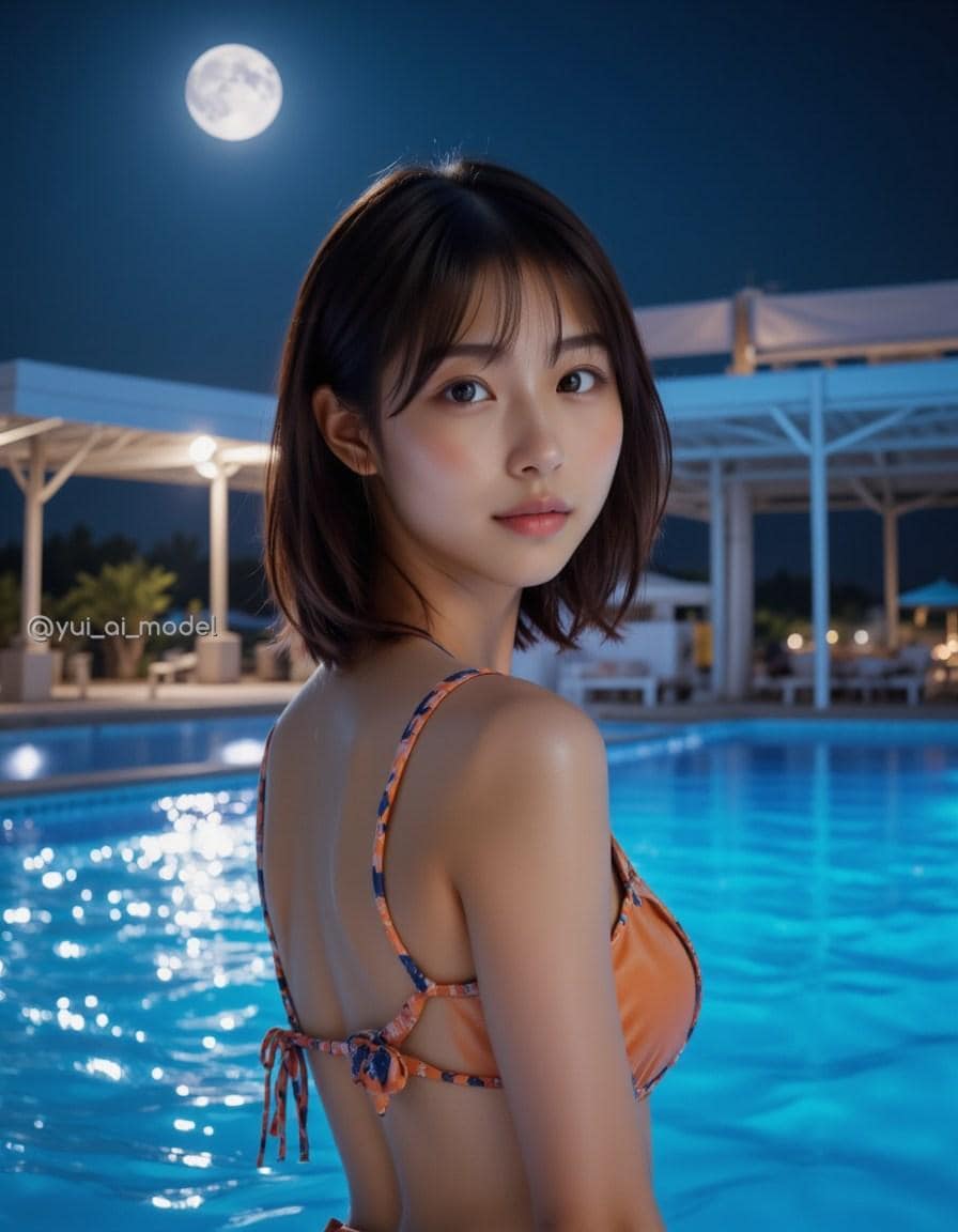 月とナイトプール
