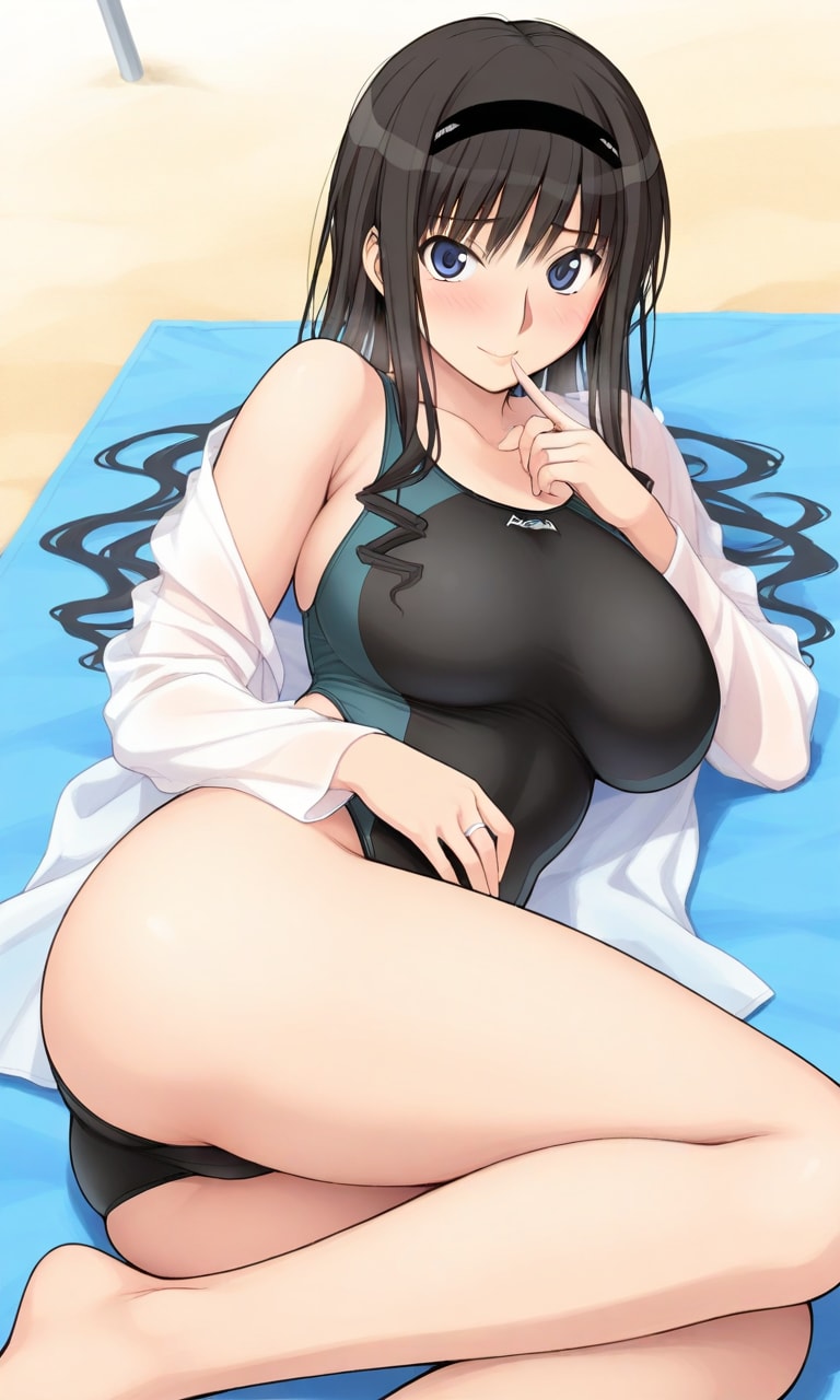 はるかさん水着姿で寝そべってくれました。お相手は自分から誘った小学生10歳。