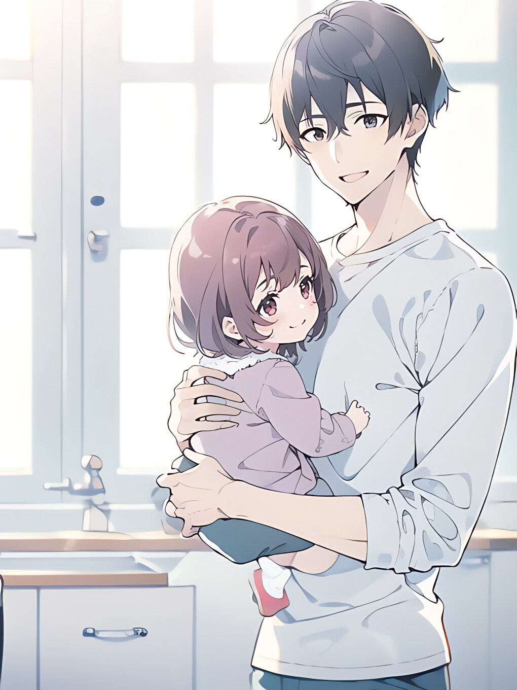 赤ちゃんを高い高いする絵がなかなかできなくて苦労しました。何とかそれっぽいのが1枚だけ出てきてくれて良かったです。