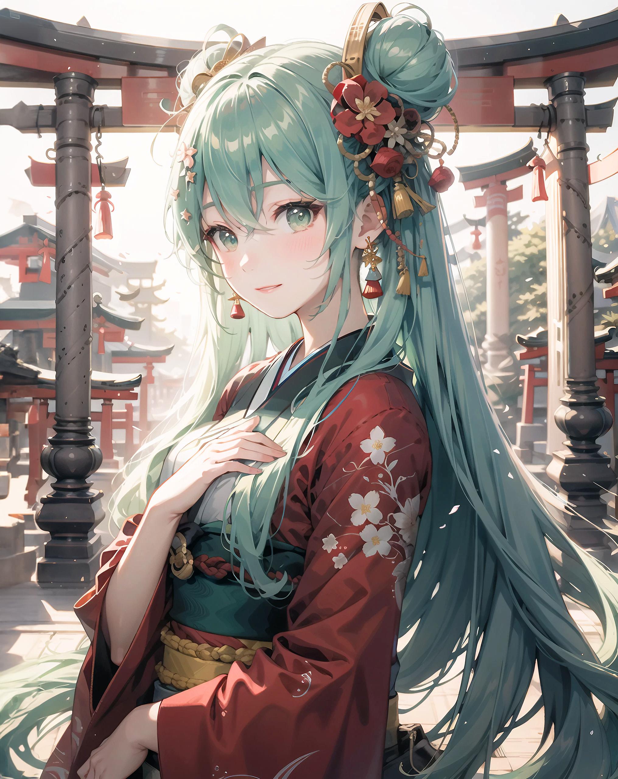 初音未來 初音ミク 着物 Miku VOCALOID ツインテール