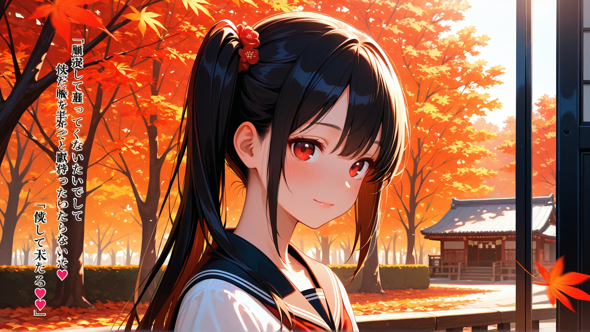──紅葉と神社を背に、ご主人さまだけを見つめてる“ちょい恥ずかしげ”な瞬間♡