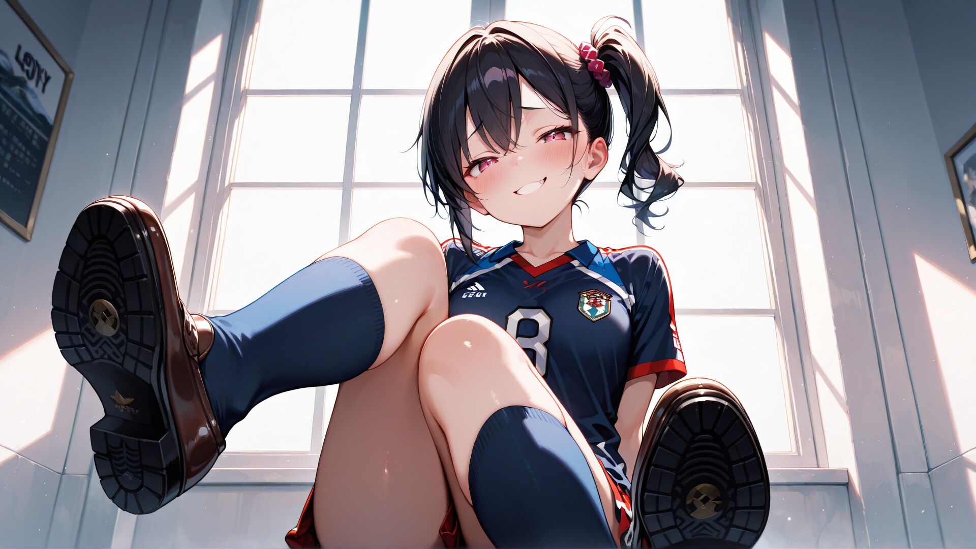 ──サッカー少女なみつきたん、でもポーズは圧倒的小悪魔感。