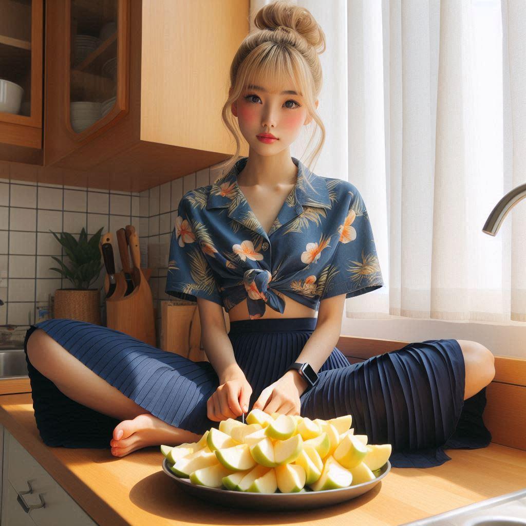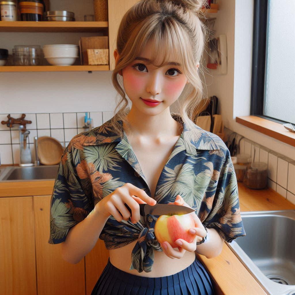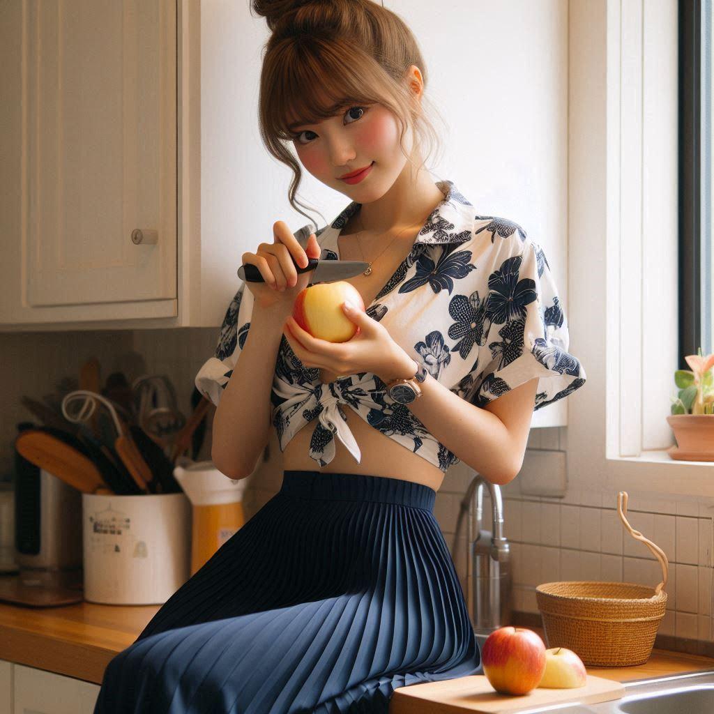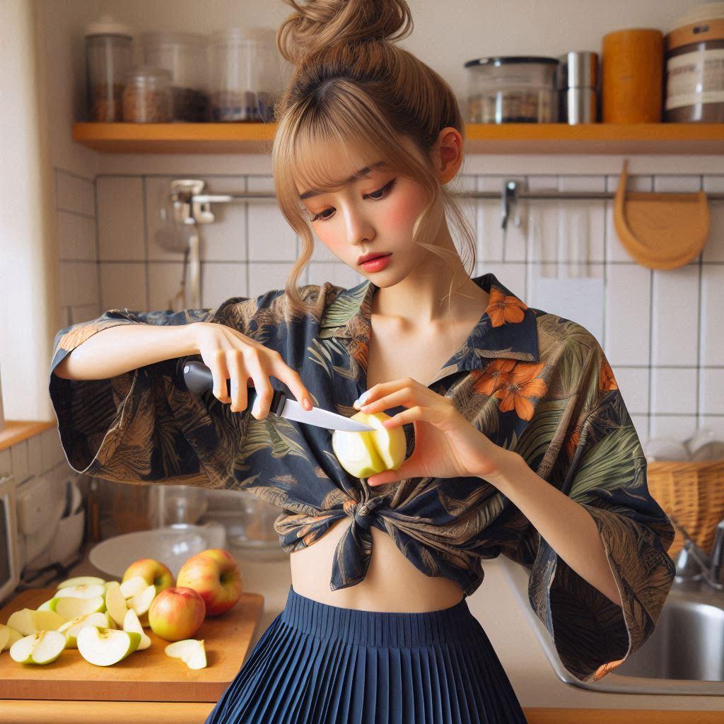 続いてリンゴの皮を剥いていきます。包丁はおっかなくて使えないよ!という場合は地道に爪でカリカリ剥くのもありかもしれません。