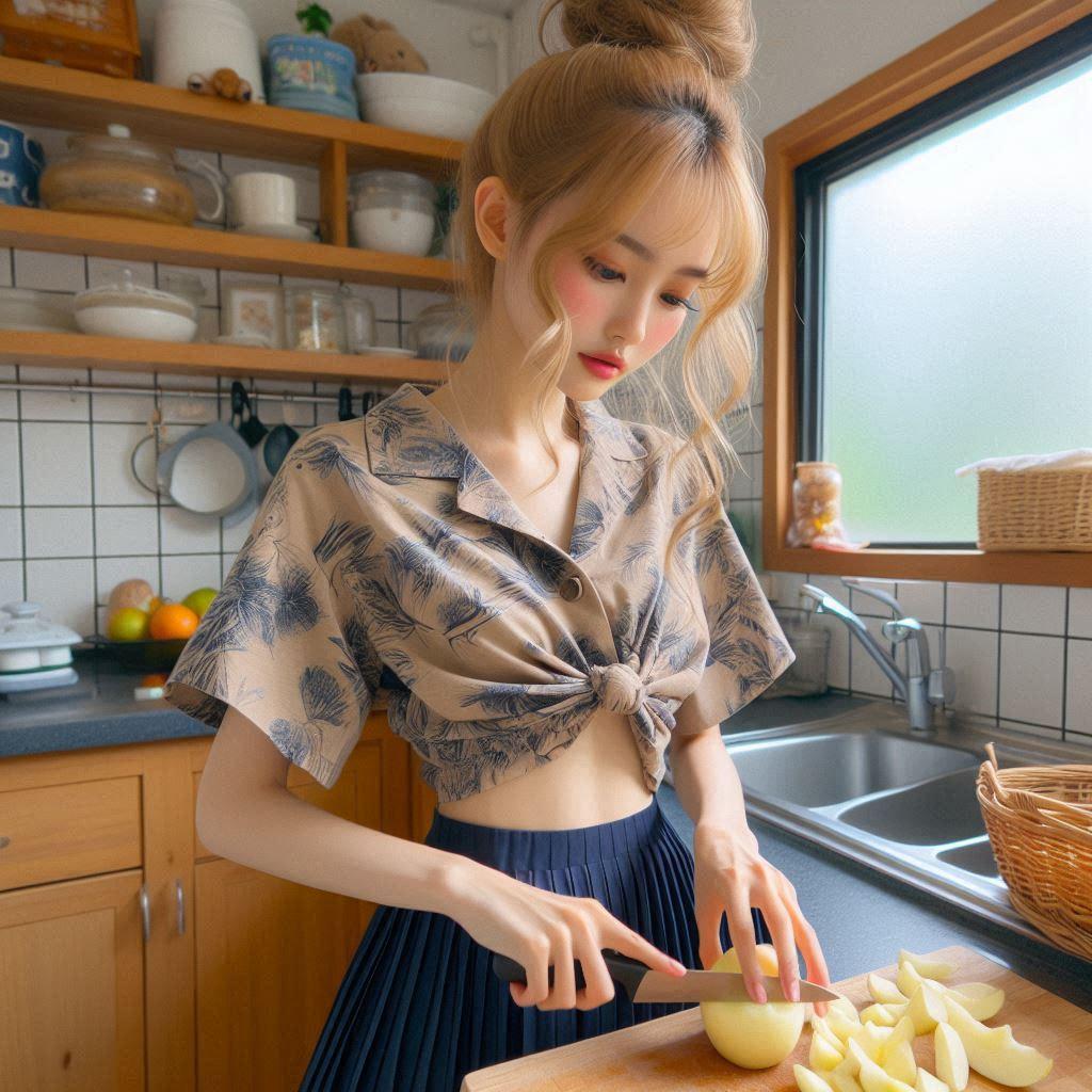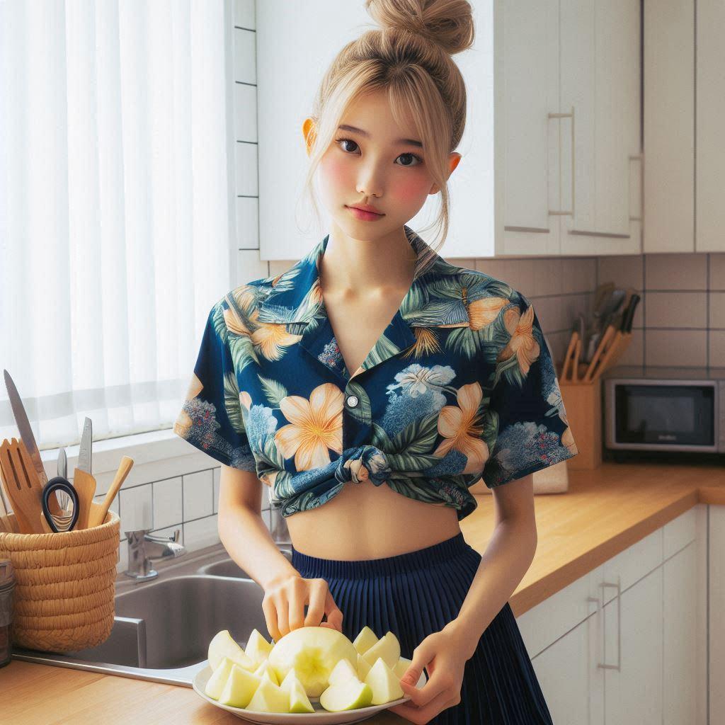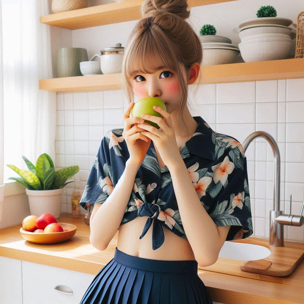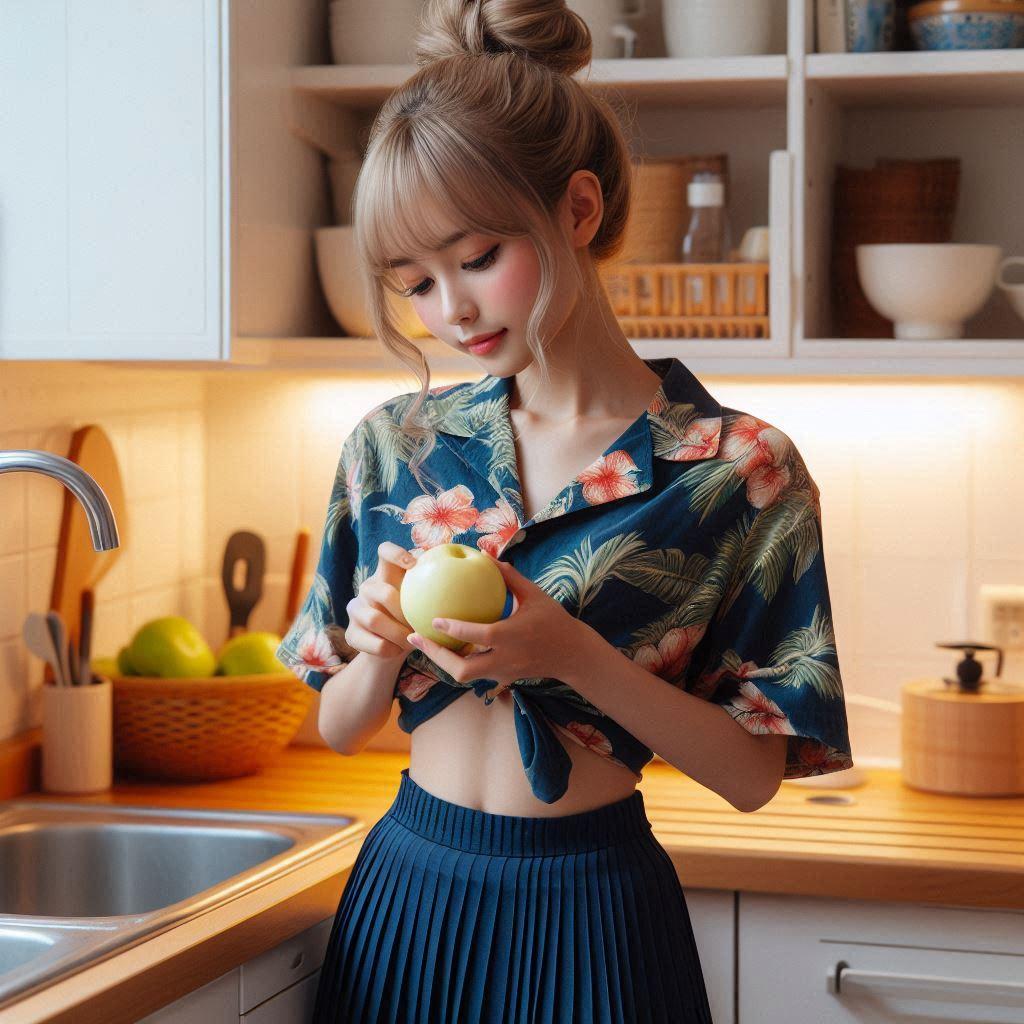 続いてリンゴの皮を剥いていきます。包丁はおっかなくて使えないよ!という場合は地道に爪でカリカリ剥くのもありかもしれません。