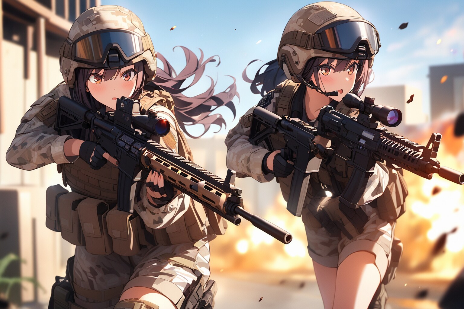 プロンプトを引用させてもらい、「ちちぷい生成機能」で初めての銃器を持つ女性の画像を生成して