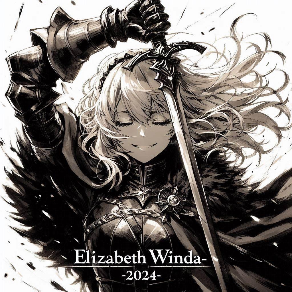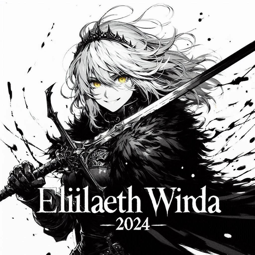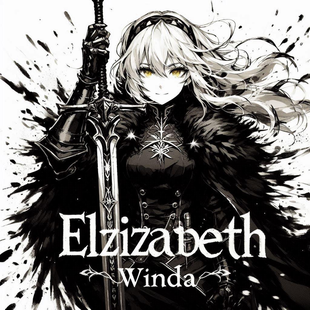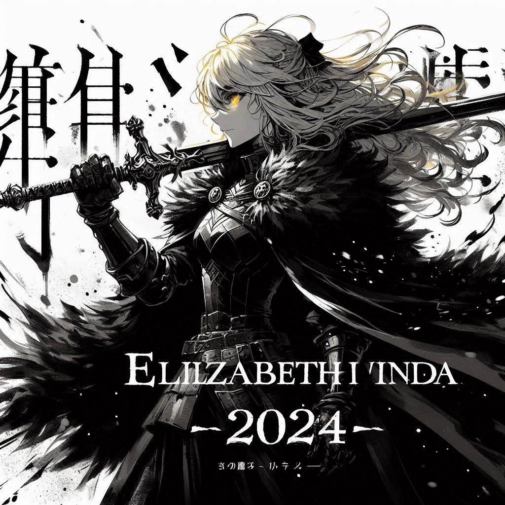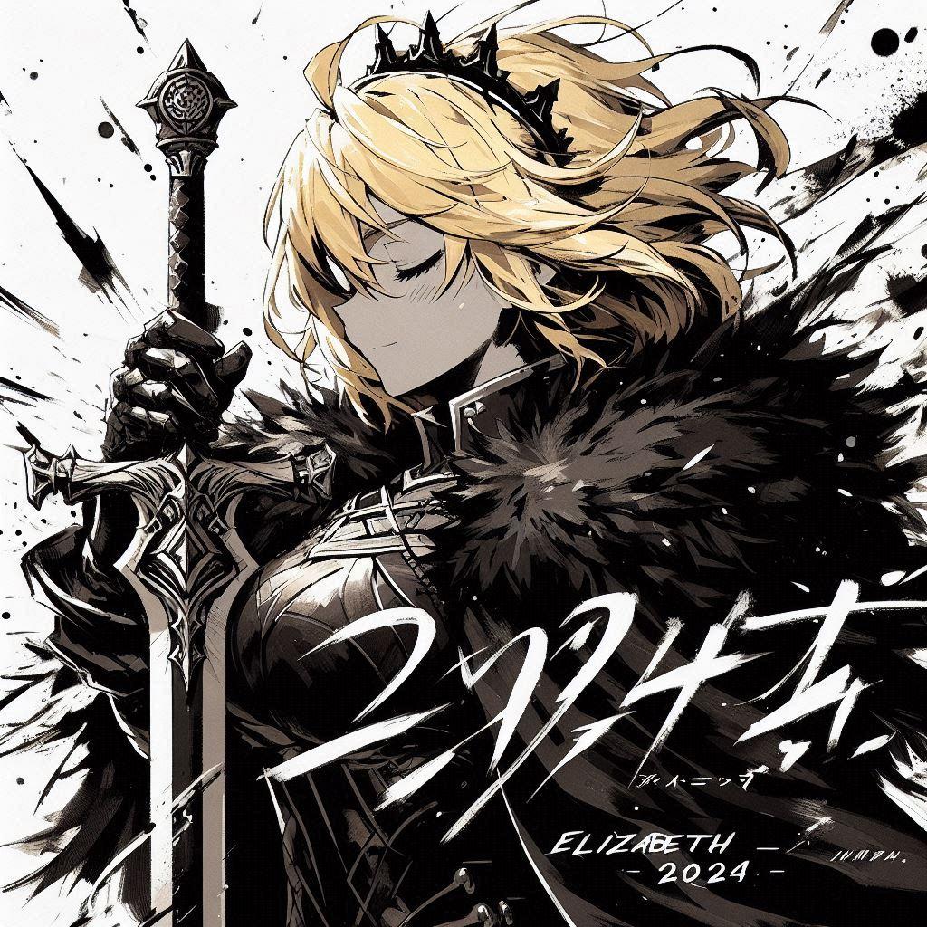 墨絵でエリザベスの映画ポスター風。