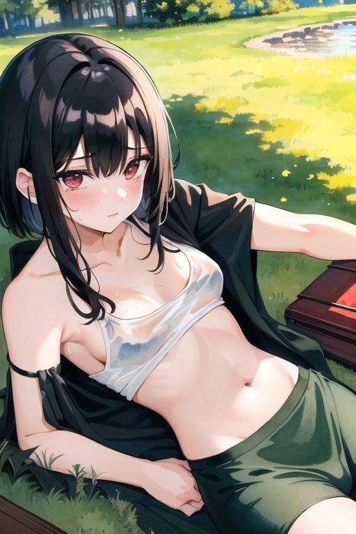 jacket partially removed, heart in eye, burnt clothes, holding fishing rod, kanji, doujin cover, pentagram, tape gag, adjusting headwear, red socks, friends, cloud print, coke-bottle glasses, oral invitation, competition school swimsuit, barbell piercing, gradient legwear, prisoner, blood on breasts, wind chime, carrying over shoulder, tape measure, flaming weapon