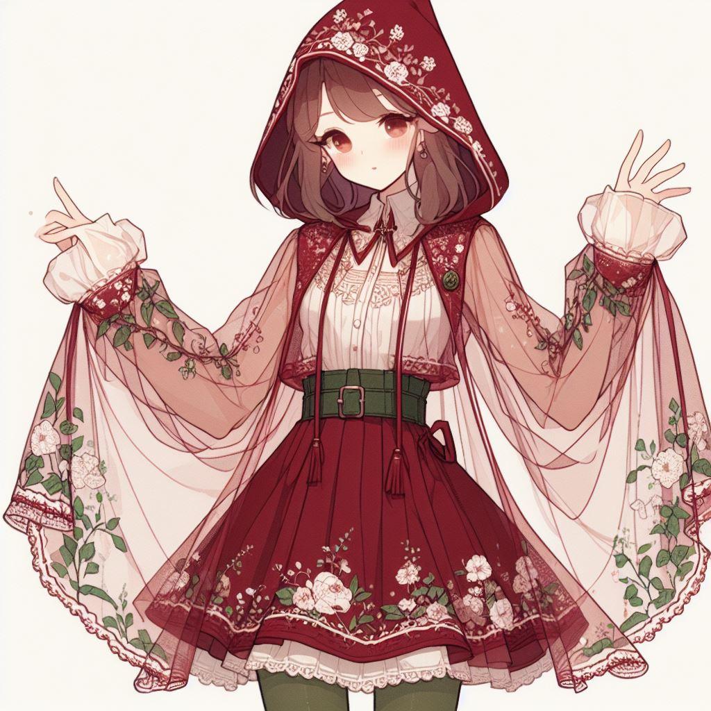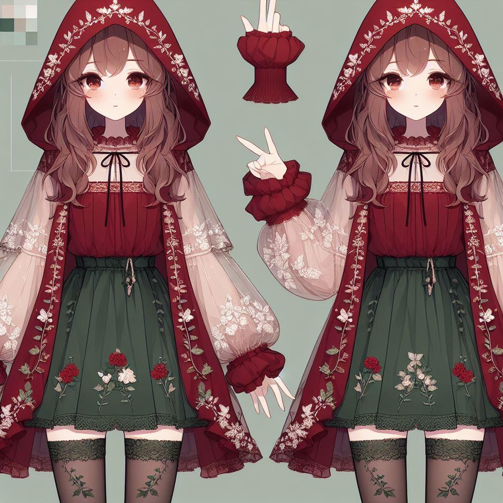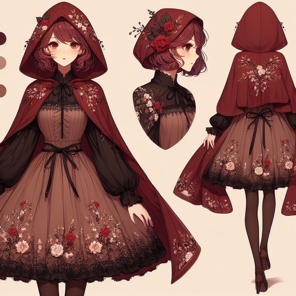 赤ずきんモチーフのワンピースドレス第三弾は「落ち着いた雰囲気」「上品」「珈琲や紅茶が似合う」です。