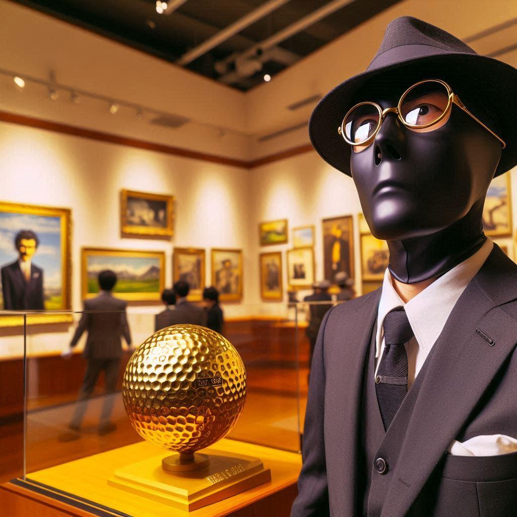 美術館に展示されている黄金のゴルフボール(時価3億6000万円)