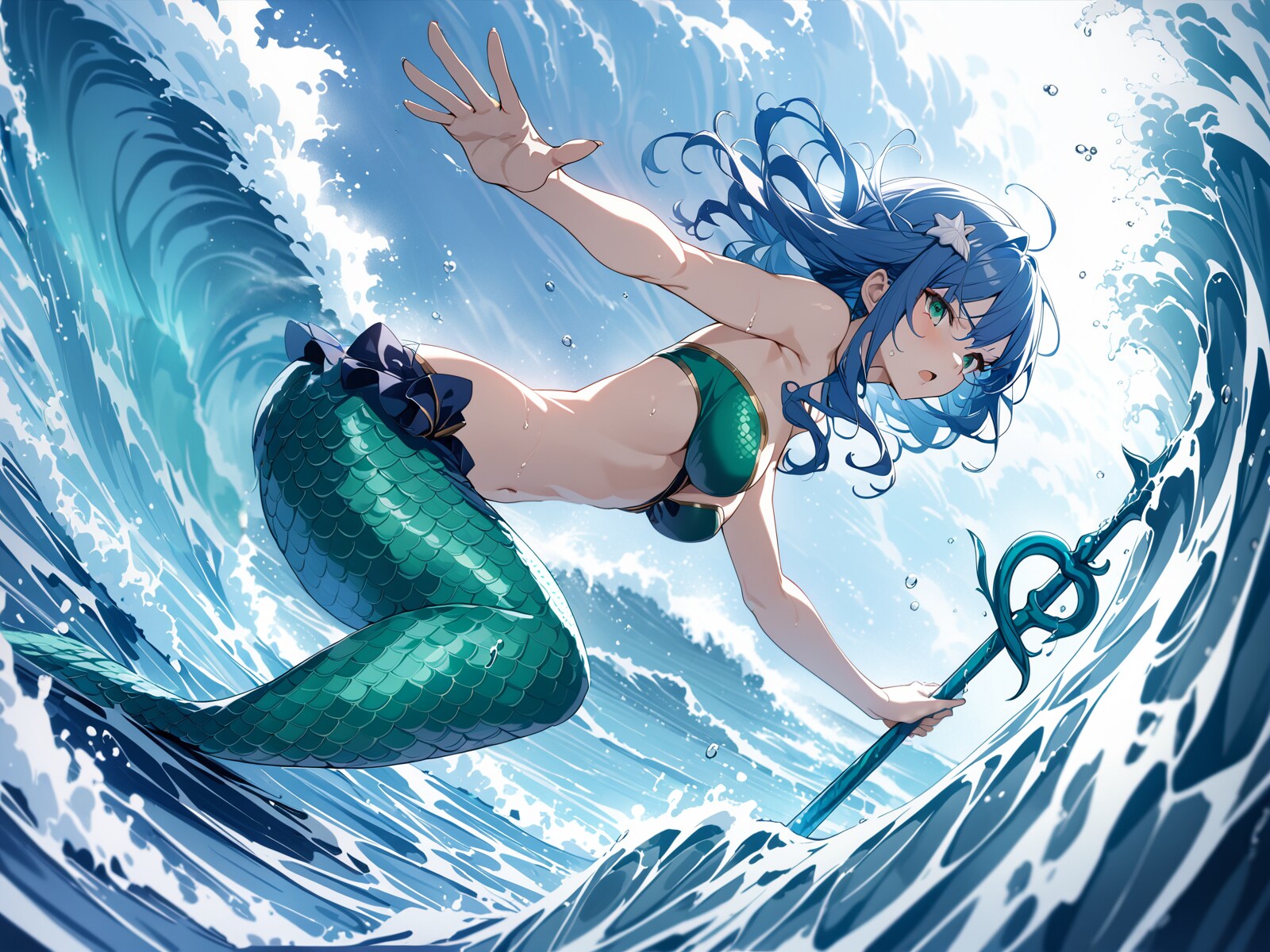 という感じで、大波を召喚して戦う人魚の戦士さん。