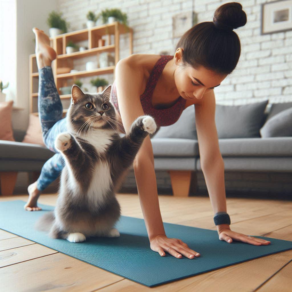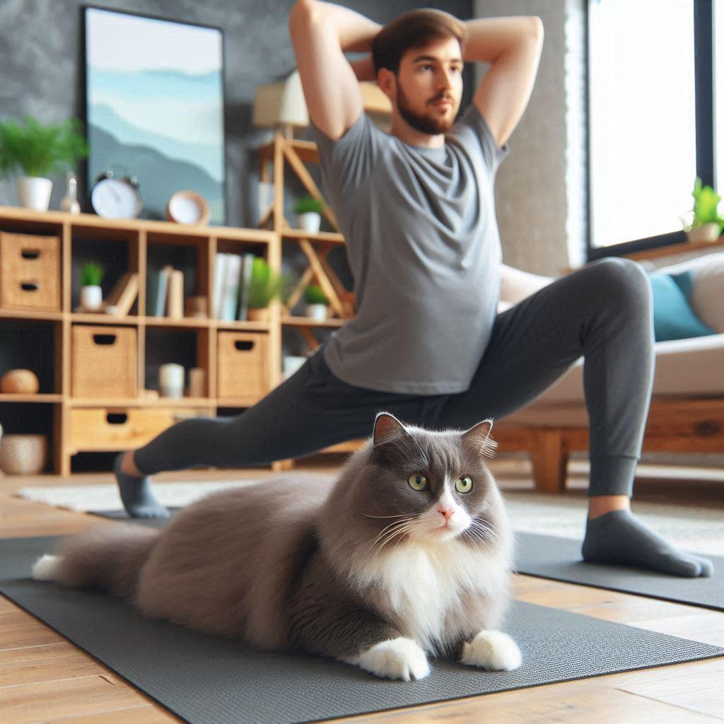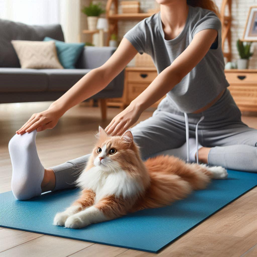 飼い主とストレッチ