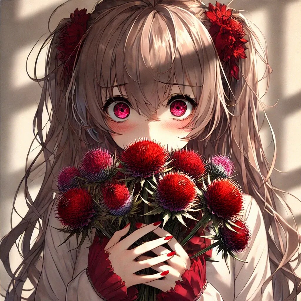 翌日ヤンデレちゃんからのプレゼントで赤い薊の花束が届きましたが、赤い薊の花言葉、それは…