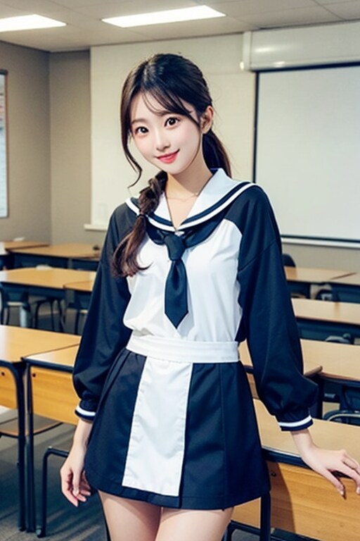 パラメータは最初のフォトのプロンプトのです。二枚目以降はセーラー服のプロンプトを変更したものです。