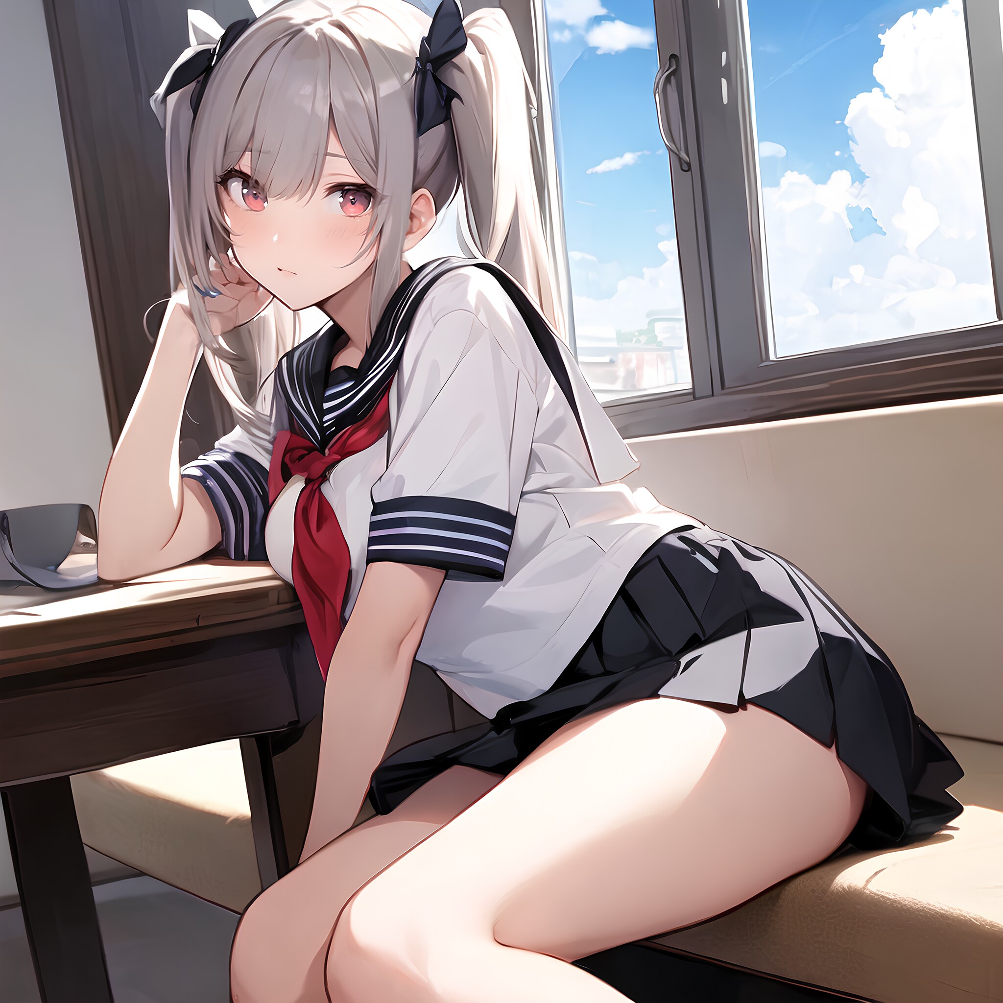 ミニスカ制服ツインテJK♪ こっちを気にしてる♡ 2(12枚)