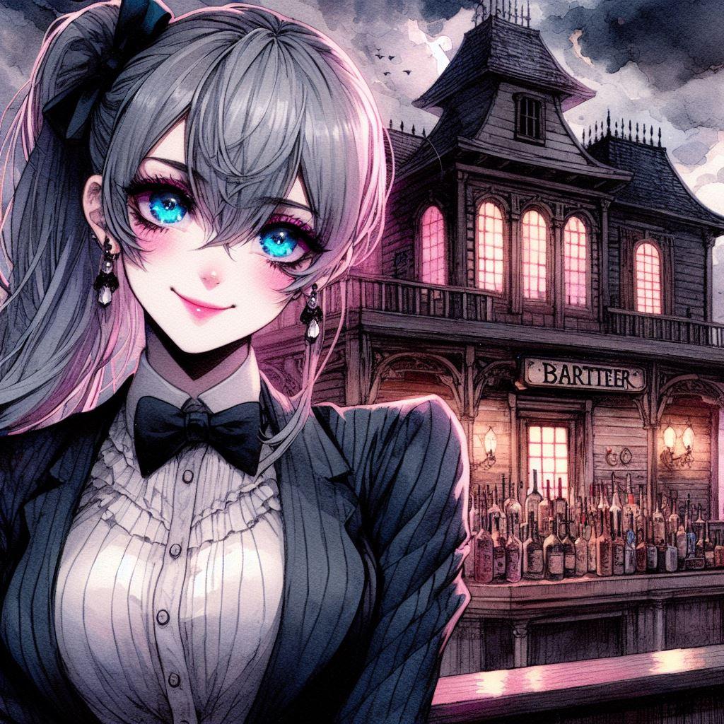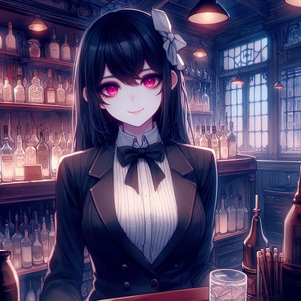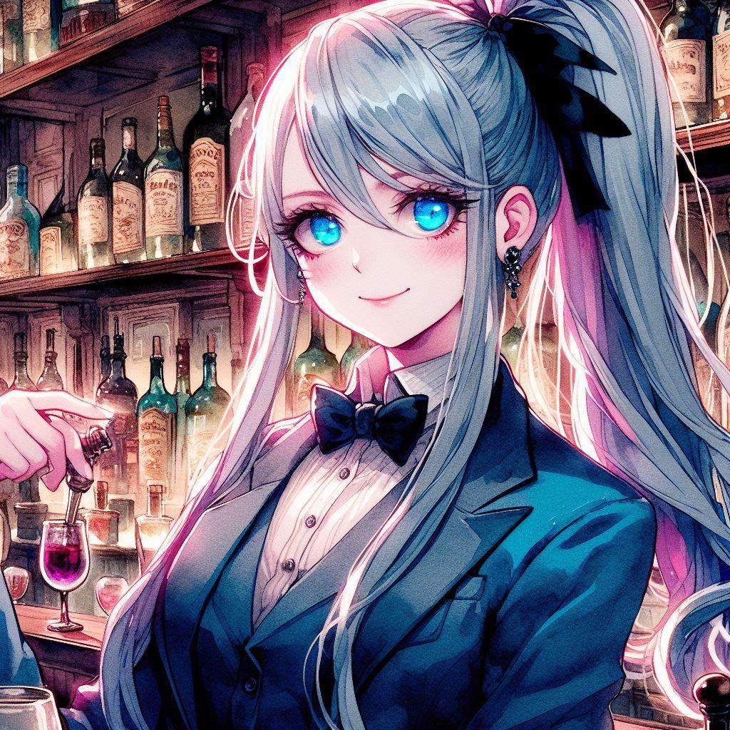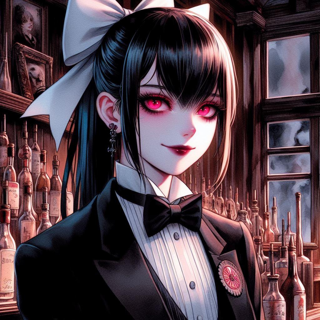 ミステリアスな館でのイベントと言う設定で、うちの子の香澄さんと遥さんは手伝いでイベントのバーテンダーを、そこにうちの子の凪咲さんも遊びに来ました。