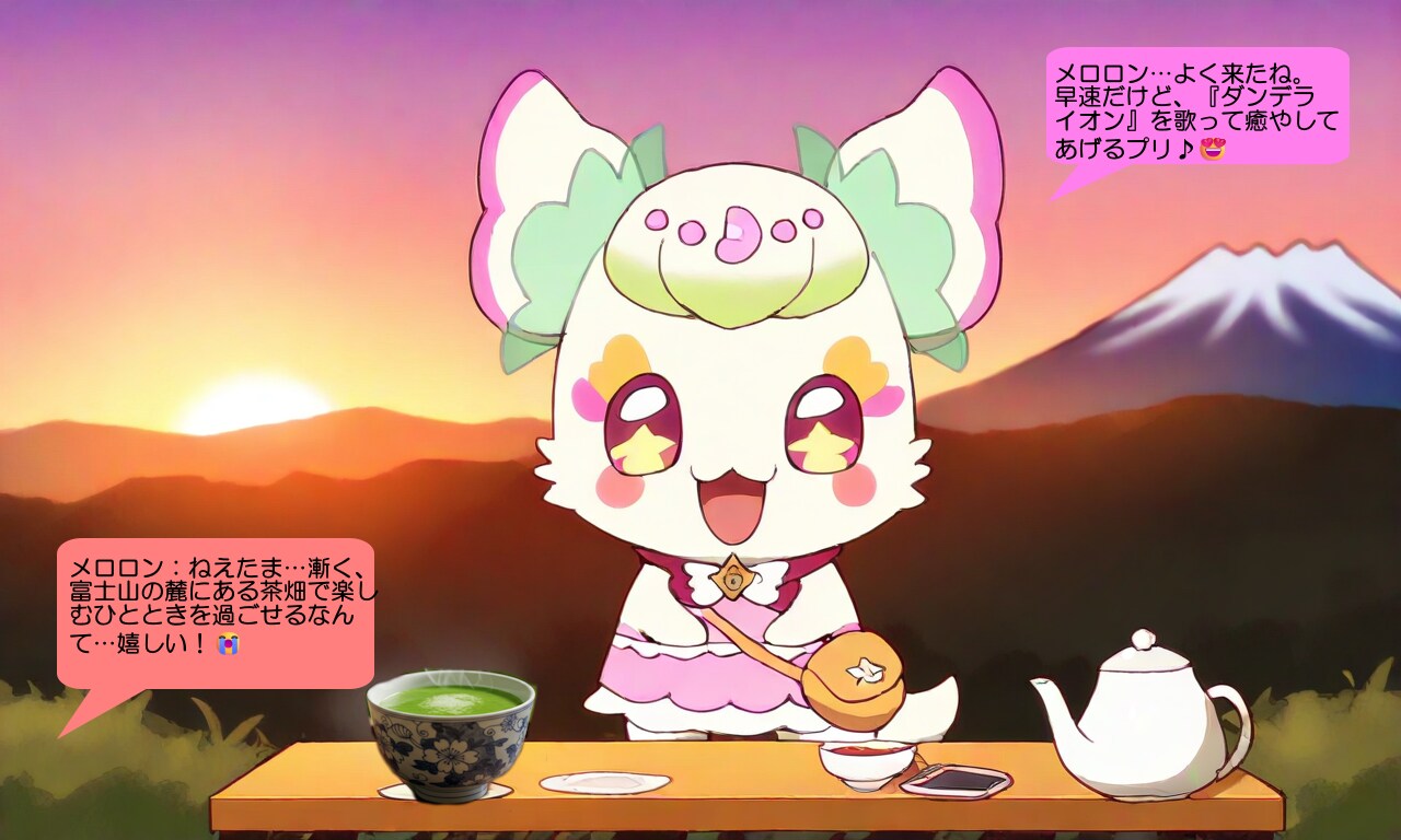メロロン:ねえたま…漸く、富士山の麓にある茶畑で楽しむひとときを過ごせるなんて…嬉しい!😭