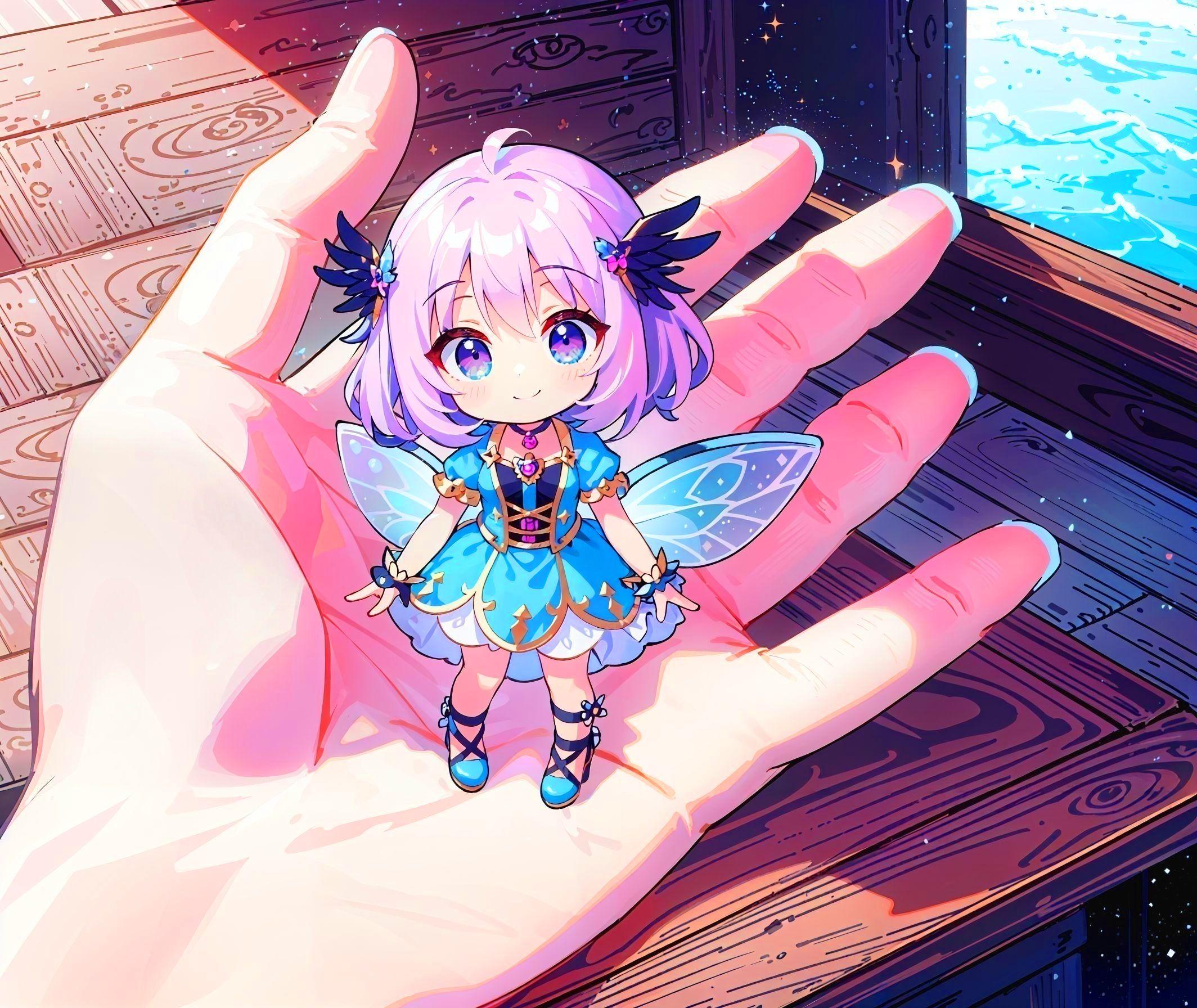 ただでさえ安定しづらい手のアップと妖精で手の一部が隠れる構図は安定しづらかったですが、とりあえずガチャでなんとかなりました。