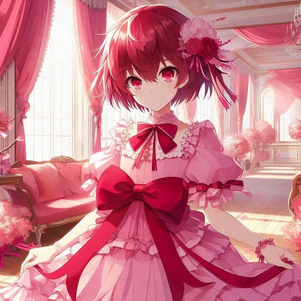 pink dressとelegant room