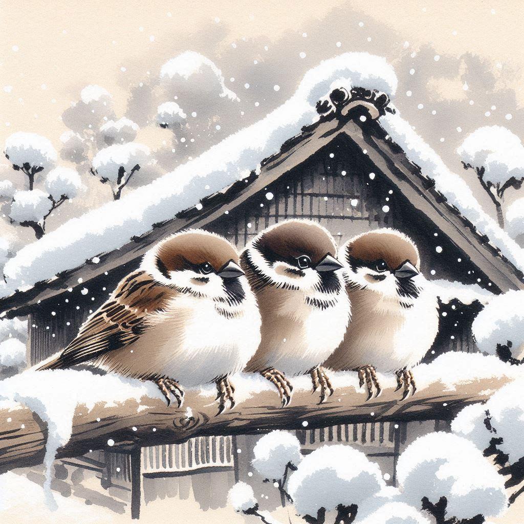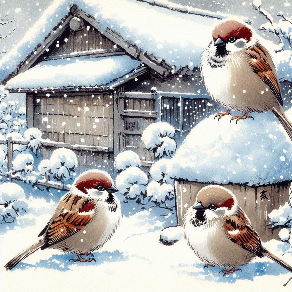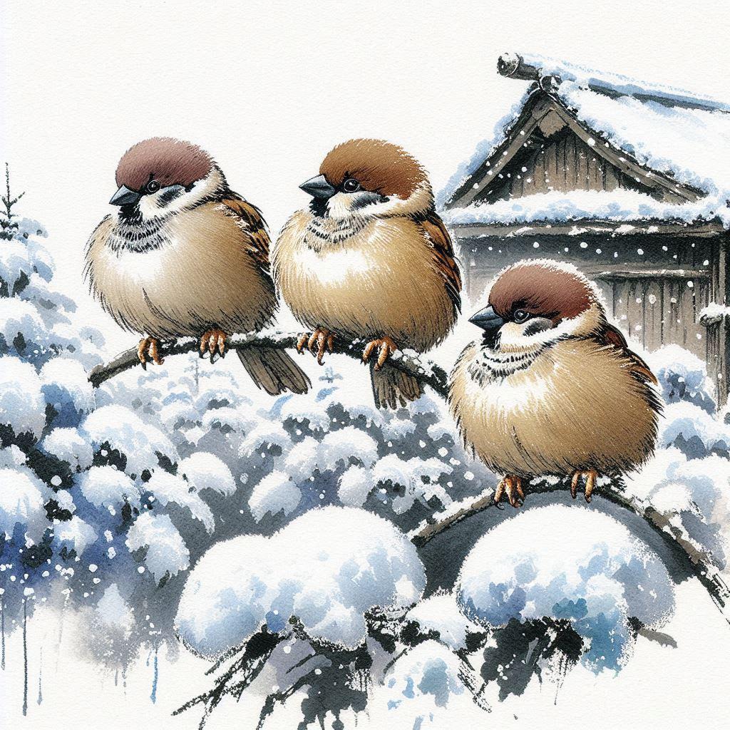 ふくら雀とは、寒さを凌ぐために羽毛を膨らませて丸くなった状態の雀をいいます。かわいいです(*^^*)