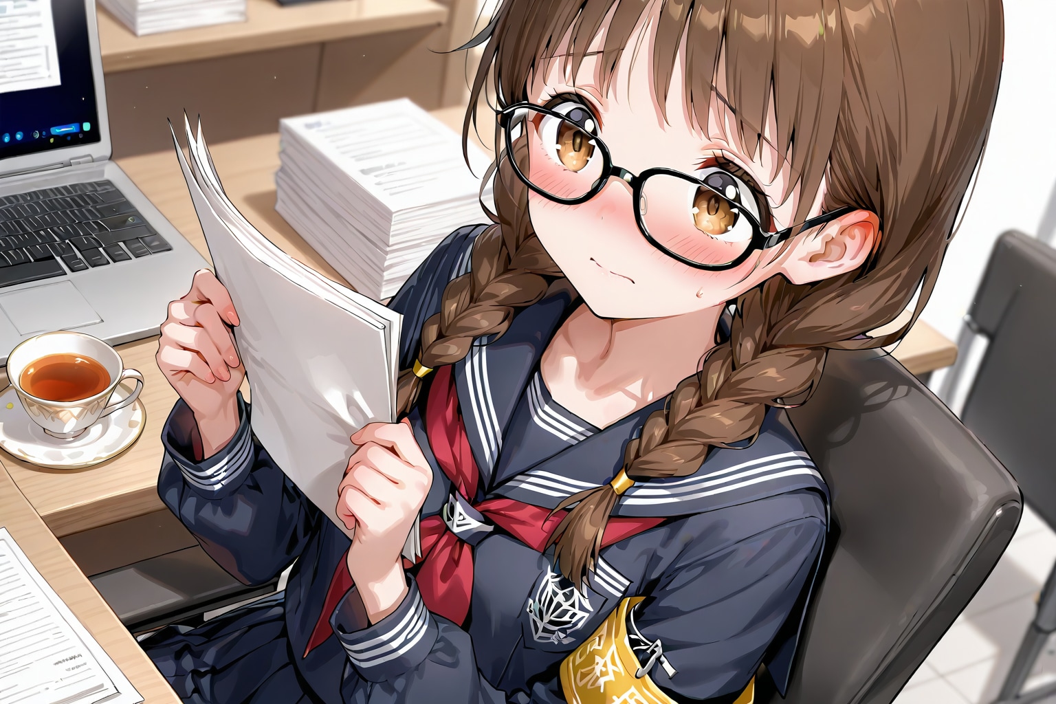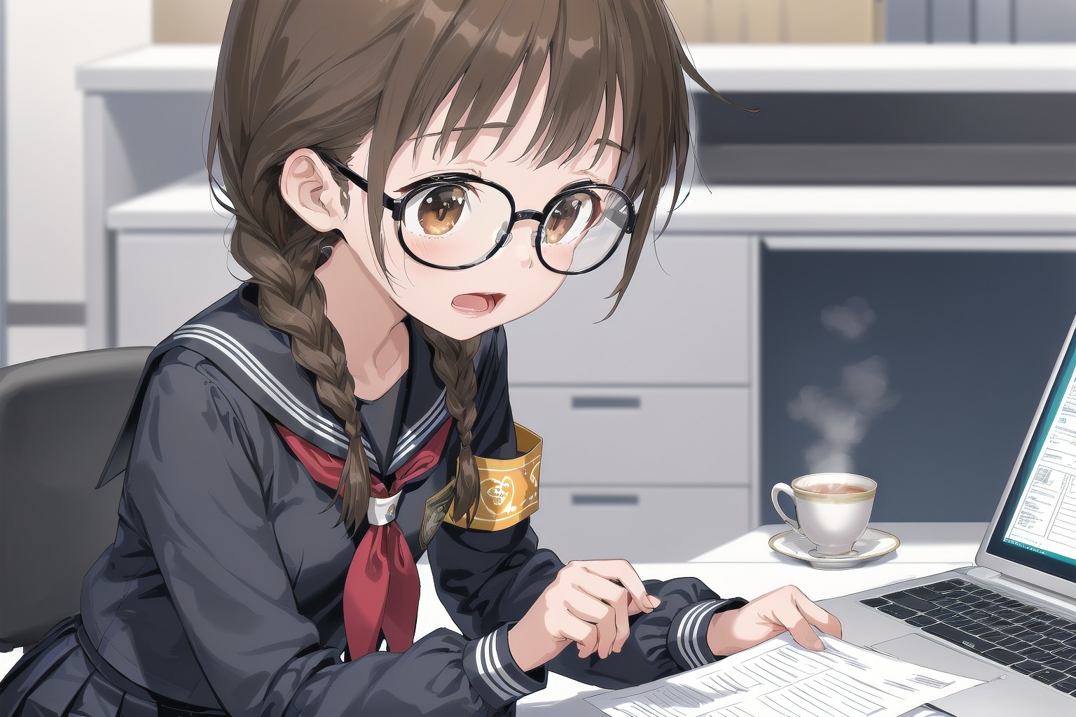 副委員長さん(3・4・7・8枚目)が微妙に頬を染めてるのは普段自分がいなくとも様々な判断をこなしてしまう委員長ちゃんが自分を頼ってくれるのがちょっと嬉しいからって紅潮してる感じでblushのプロンプトを入れてみました。