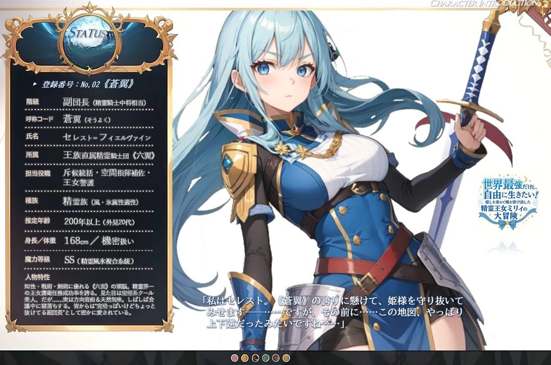 セレスト副団長(蒼翼)――《六翼》団員名簿記録 / 世界最強だけど自由に生きたい! 癒しを求めて城を抜け出した精霊王女ミリィの大冒険