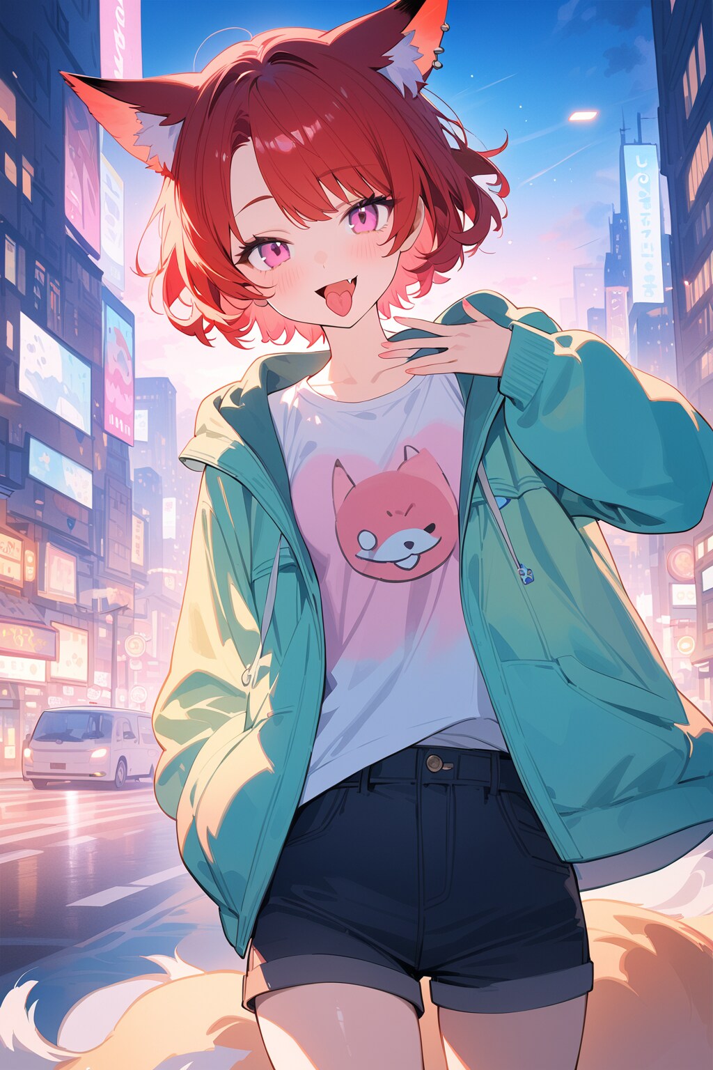 ・ポーズは特に細かい指定はしていなくて、 model pose を付けてガチャしていったら、スタイリッシュてへぺろ写真ぽくなったものです😺