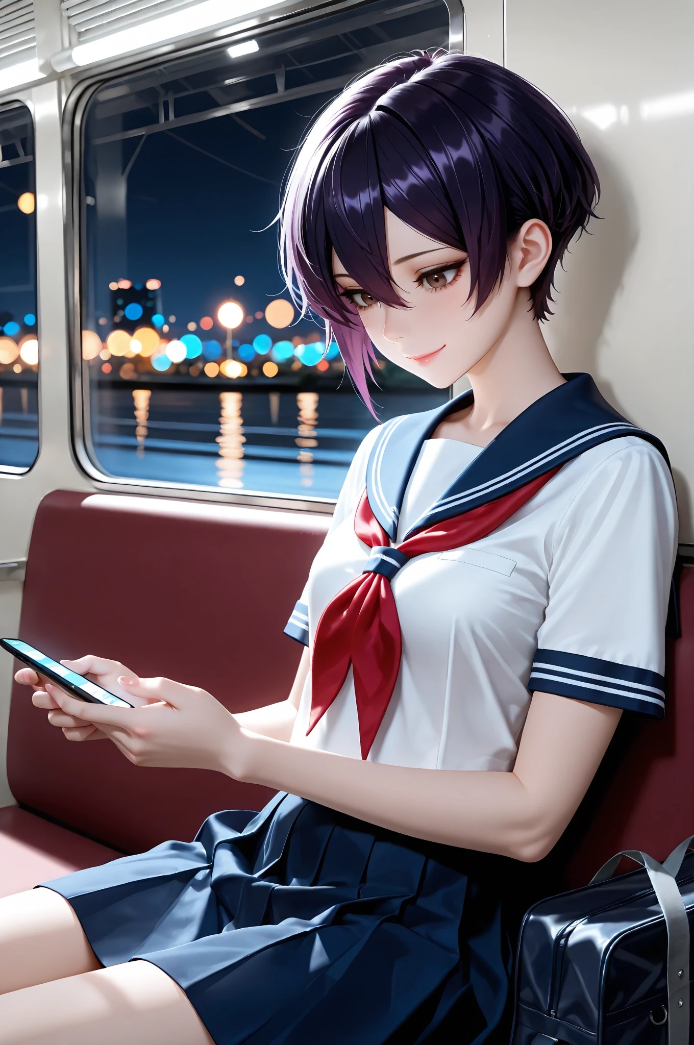 窓ガラスに映る自分の横顔は、いつもより鋭く見えた。陸上のユニフォームから着替えたセーラー服の襟元が少しだけ緩んでいる。佳凛は誰もいないドア際に寄りかかり、スマホ画面に集中していた。